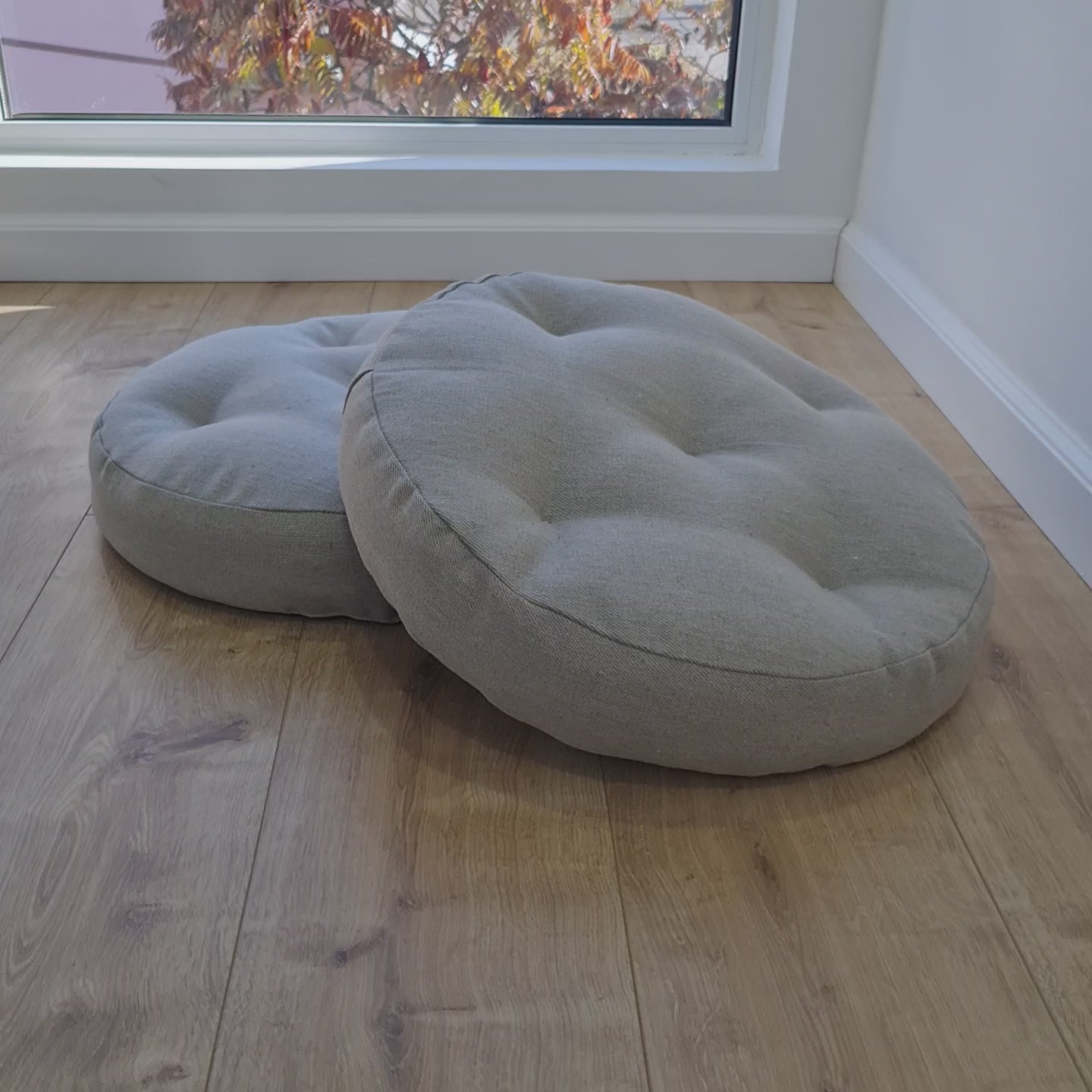 Round Hemp cushion Hemp fiber in non-dyed linen fabric natural organic Floor cushion