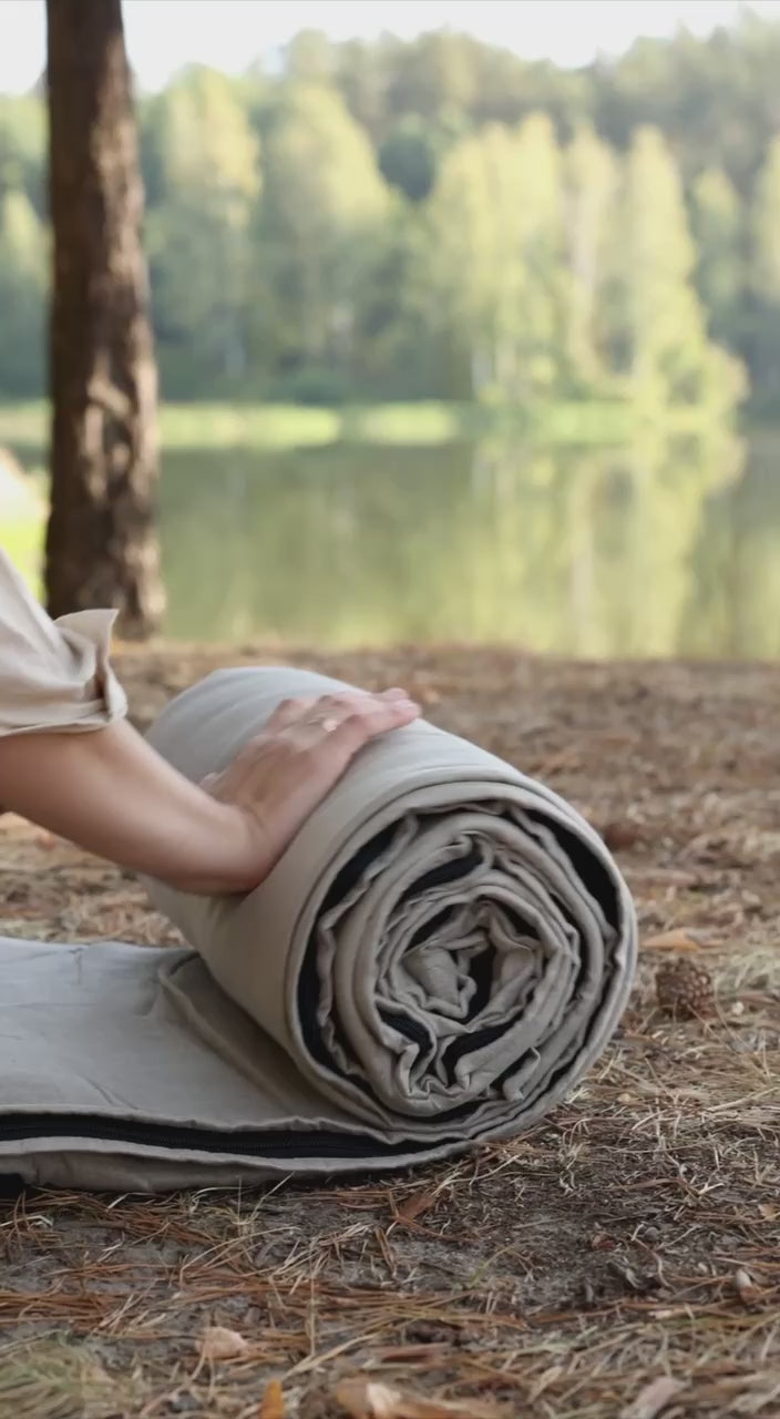 Easy Organic HEMP Sleeping bag in linen fabric- organic hemp fiber filling + linen fabric - hand made