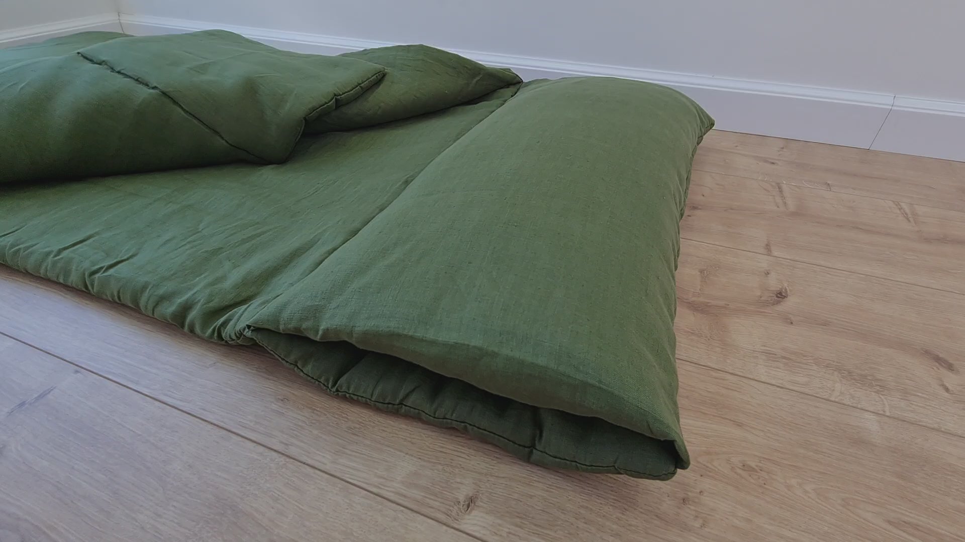 Kindergarten Hemp Linen Sleeping Bag with Pillow School Nap Mat Kids Organic Hemp Fiber Filling in green Linen Fabric blanket, hand made