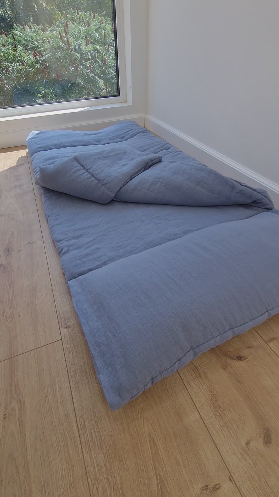 Kindergarten Hemp Linen Sleeping Bag with Pillow School Nap Mat Kids Organic Hemp Fiber Filling in light blue Linen Fabric, hand made