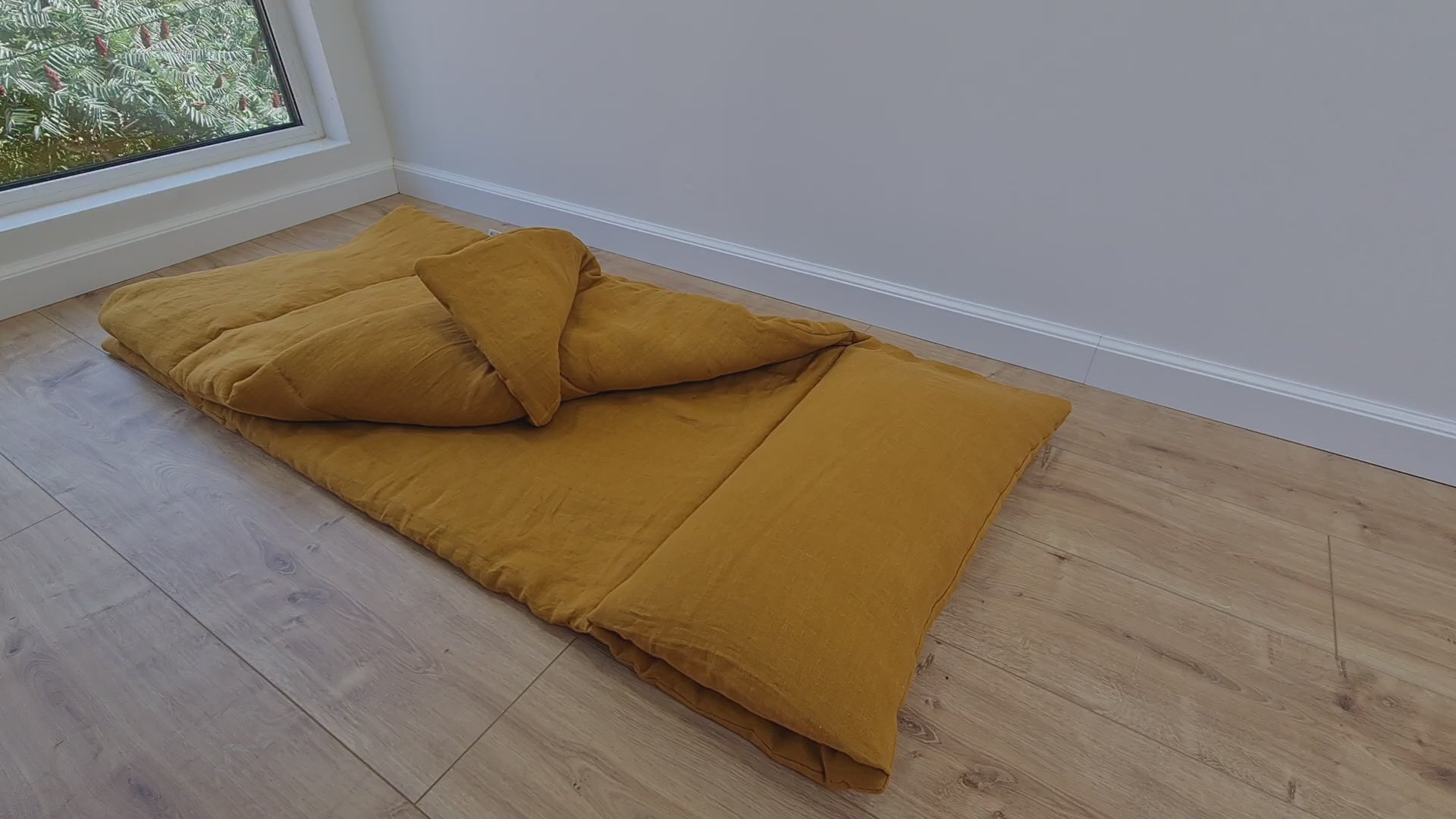 Kindergarten Hemp Linen Sleeping Bag with Pillow School Nap Mat Kids Organic Hemp Fiber Filling in mustard Linen Fabric hand made