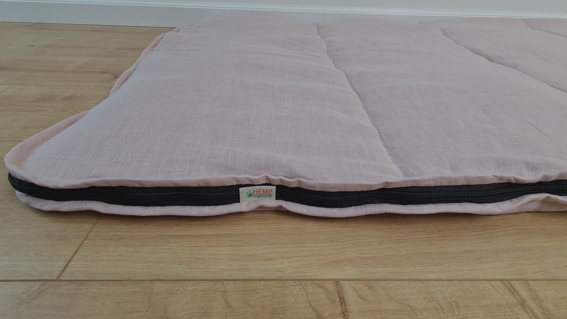 Thick HEMP Sleeping bag in washed ashen pink linen fabric- organic hemp fiber filling + linen fabric - blanket quilt, hand made
