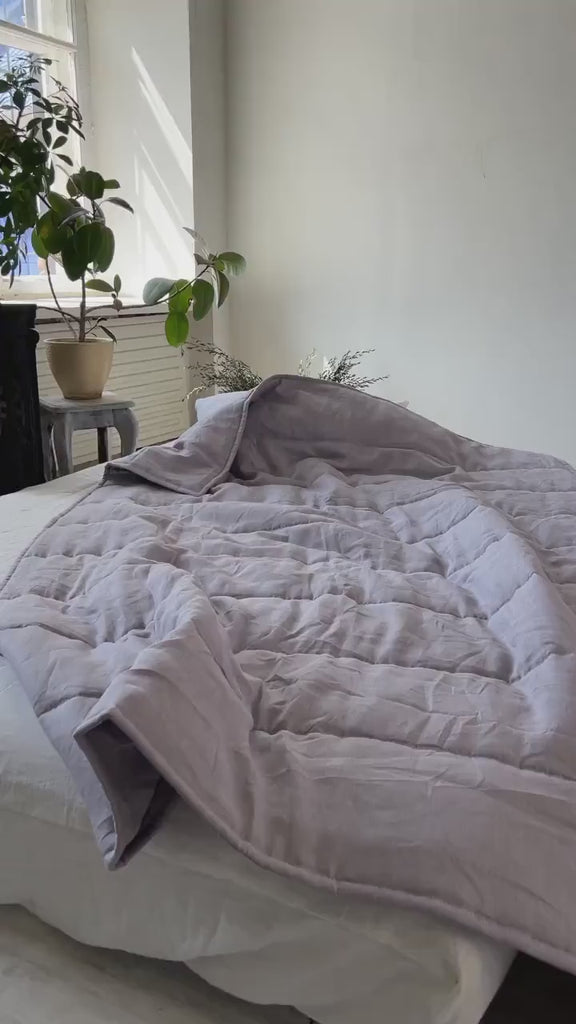 43" x 57" (110 x 145 cm) Lilac HEMP Linen Blanket Quilt Linen Fabric filled organic Hemp Fiber Filler