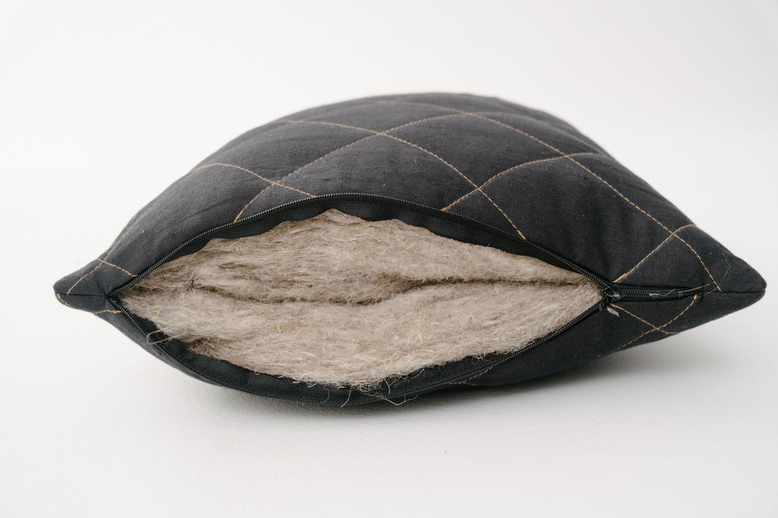 The filler is made of environmentally friendly hemp fiber. The base is natural - hemp fiber, to help it retain its shape and remain elastic, a small addition of polyester fibers is allowed. Their role is purely technical - to gently bind the hemp fibers together and increase elasticity, without affecting the natural properties of the product, providing comfort.