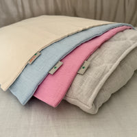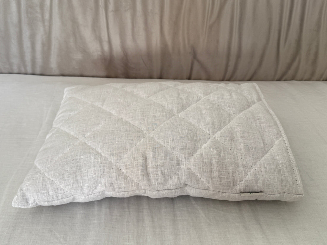 Pillow for babies in a quilted hemp cover, inside a layer of natural hemp filler.