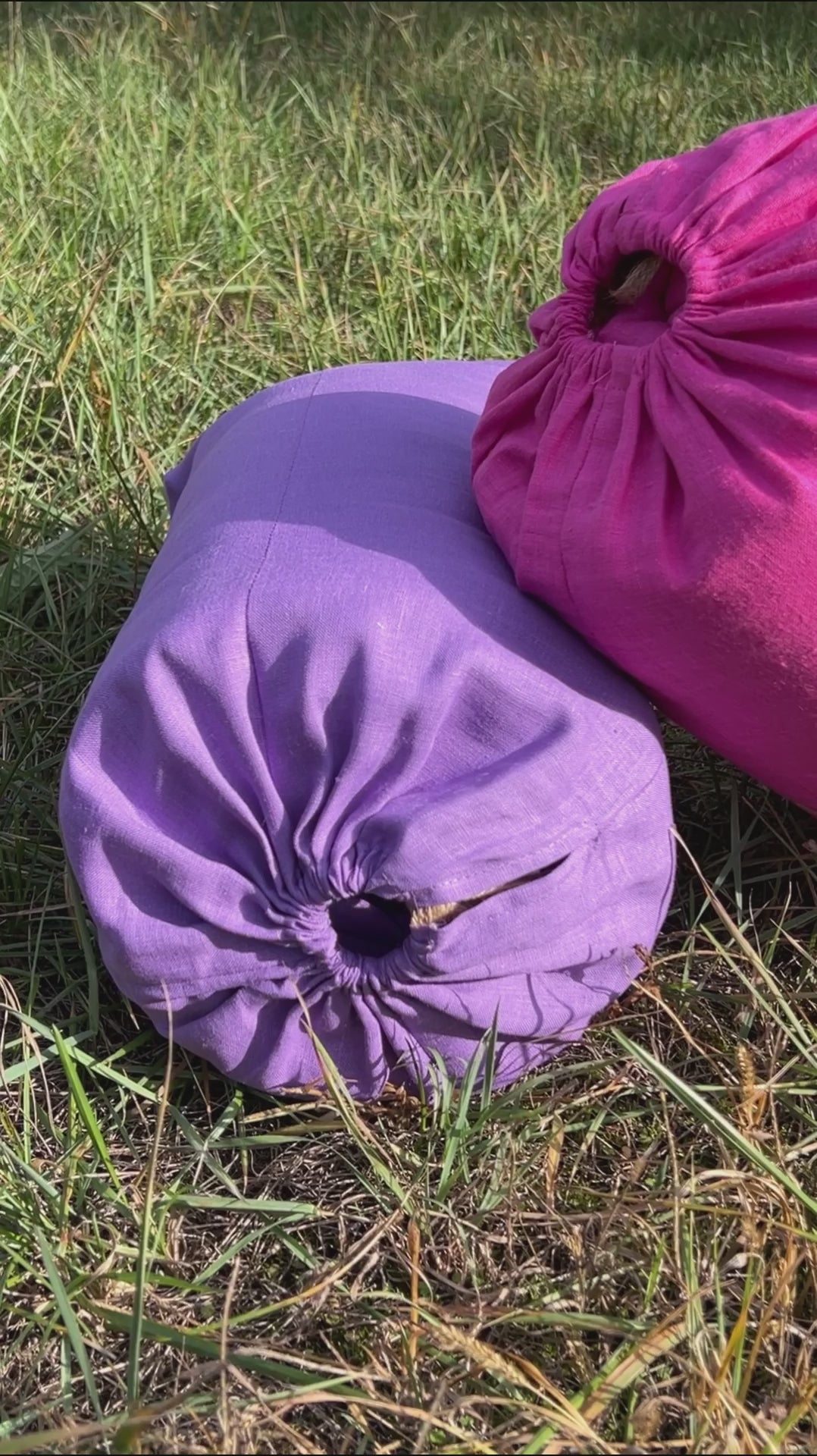 Organic HEMP sleeping bag in linen fabric with bright pink / lilac colors for your mood.