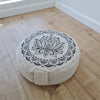 D14"x4.7" (35 x 12 cm) HEMP Zafu floor cushion with Buckwheat hulls with Lotus print /Organic Meditation cushion/ pillow seat/ Yoga