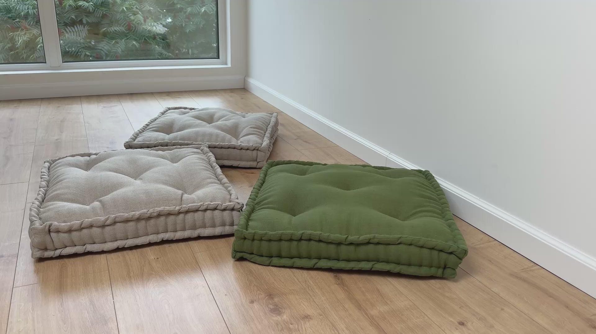 Green Hemp Floor cushion with organic hemp fiber filling in linen fabric / floor pillow Pillow seat/Meditation Yoga /Natural