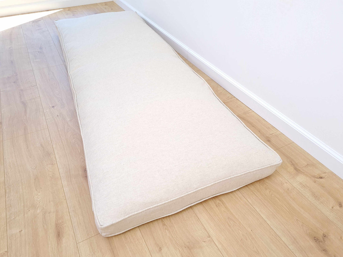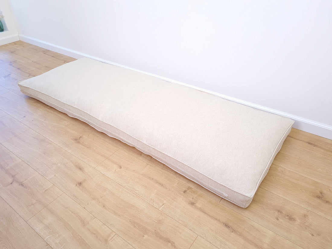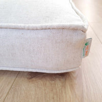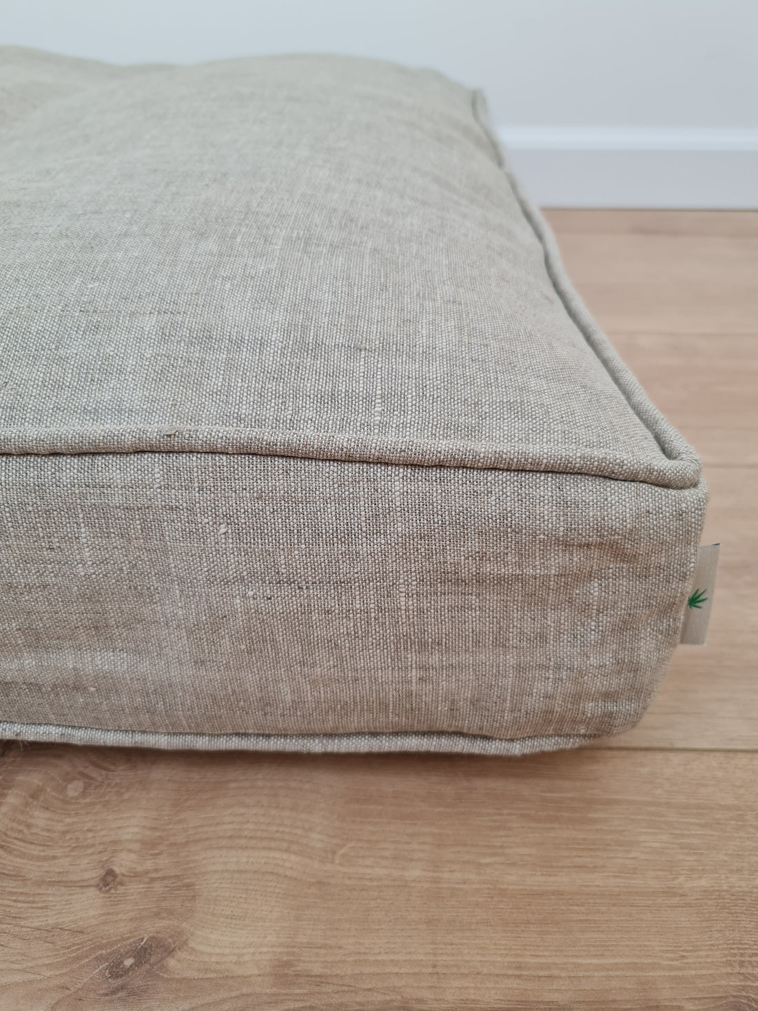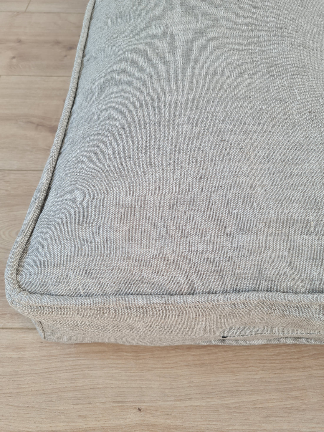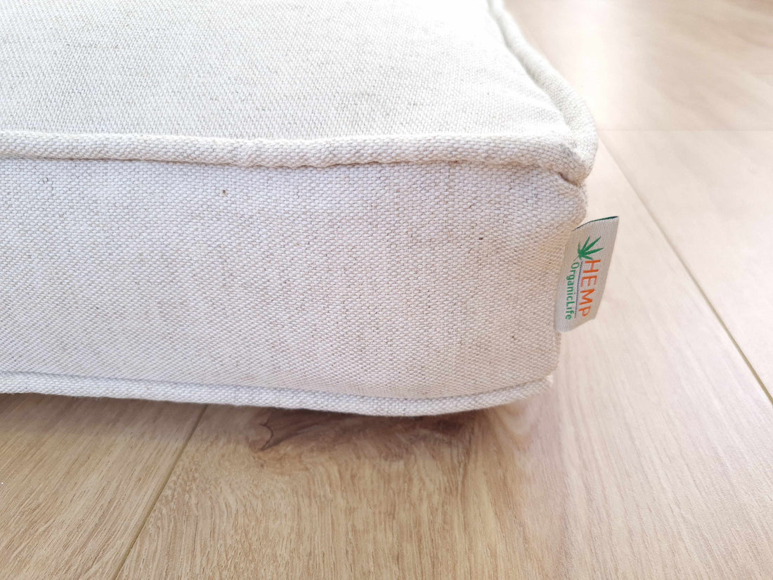 Hemp Custom made Window Mudroom Floor bench cushion with removable linen cover, with a lace, without stitches filled organic hemp fiber in natural non-dyed cotton fabric