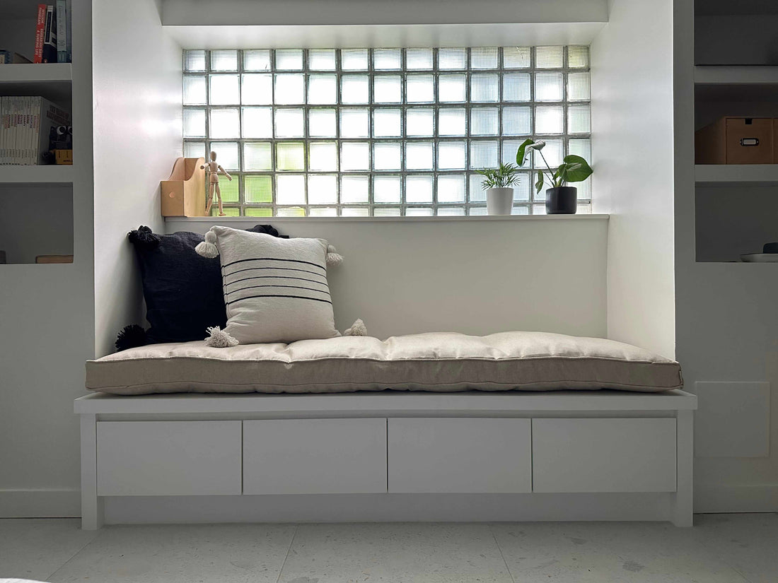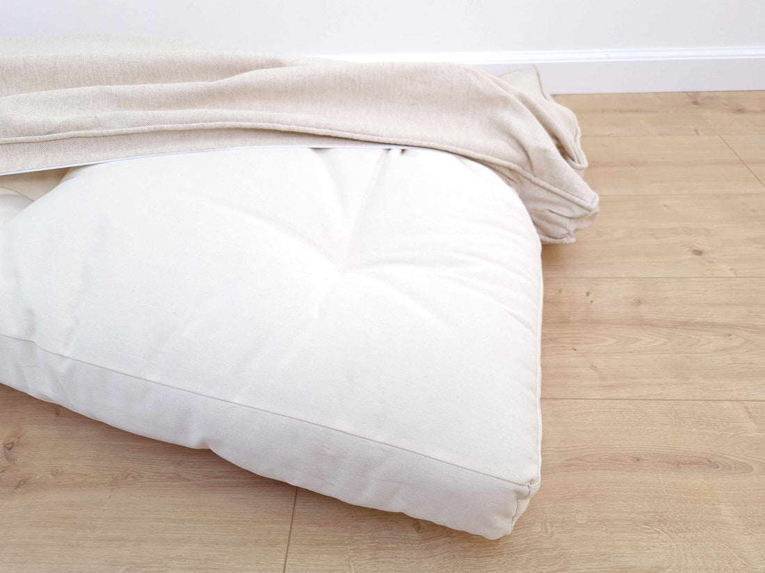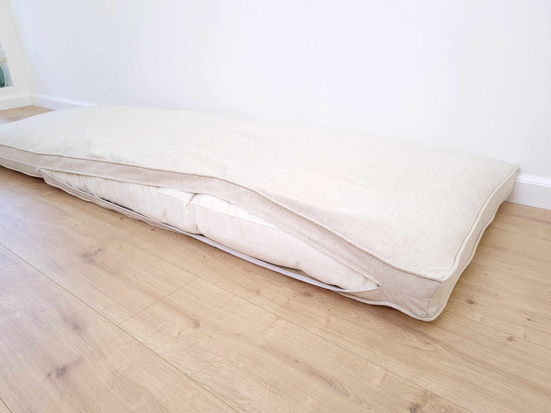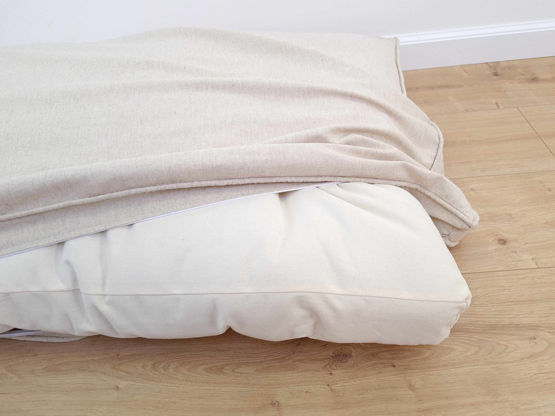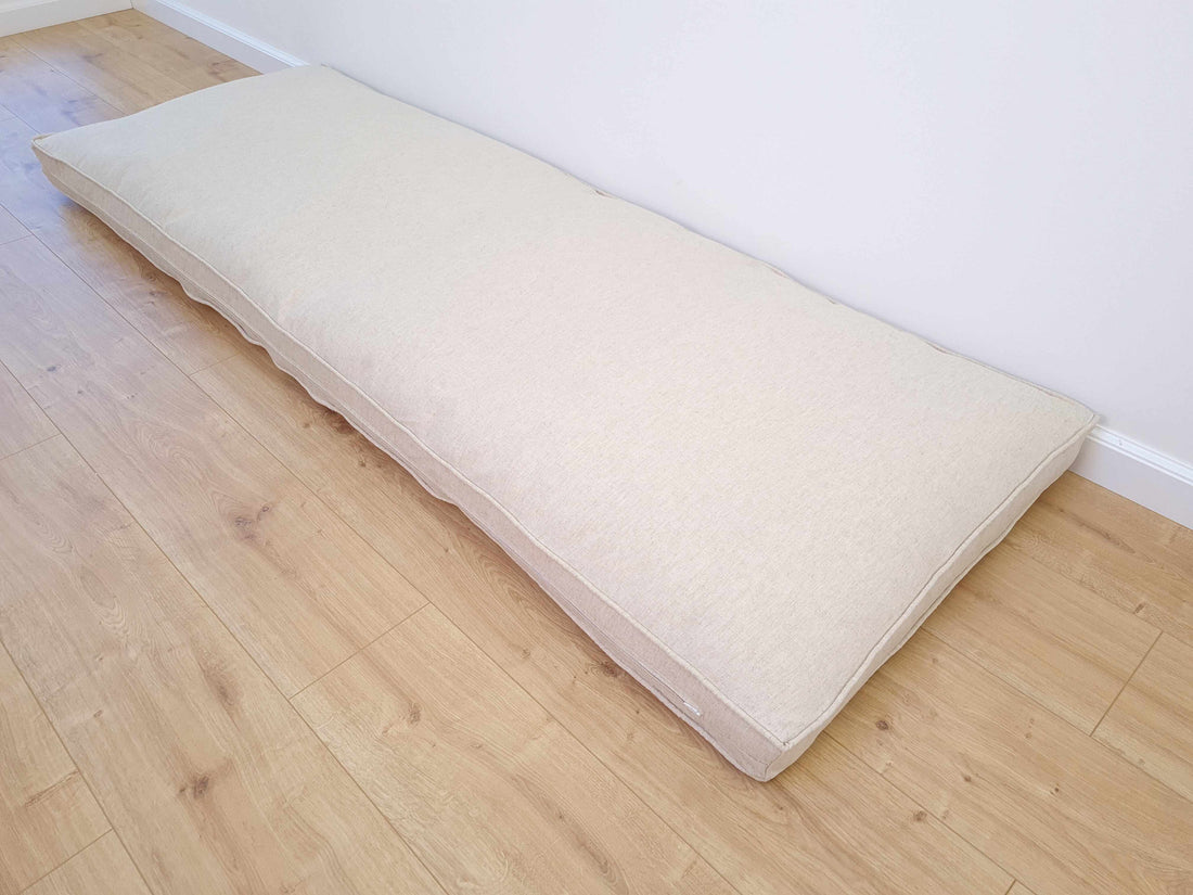 Hemp Custom made Window Mudroom Floor bench cushion with removable linen cover, with a lace, without stitches filled organic hemp fiber in natural non-dyed cotton fabric