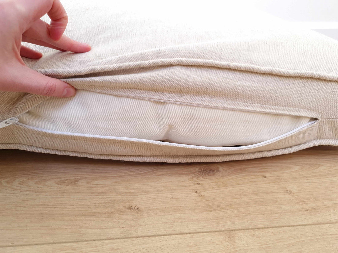 Caring for a linen removable cover is simple: you need to remove the cover, turn inside out and fasten the zipper. Linen covers can be washed in a delicate mode washing up to 30 degrees Celsius.