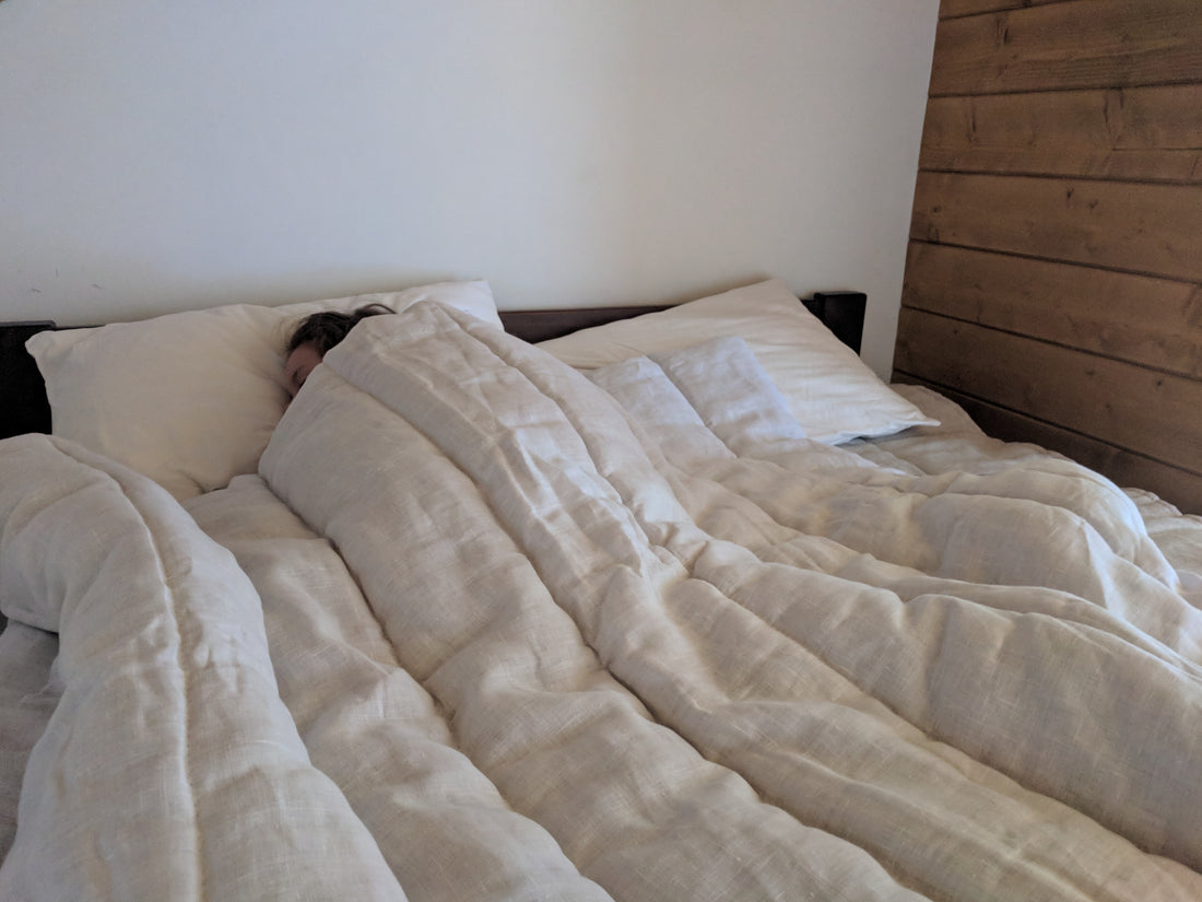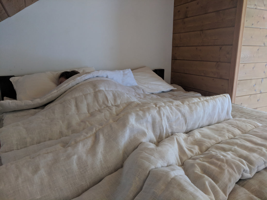The body releases a lot of moisture at night, which should evaporate in a natural way due to the proper ventilation: hemp fiber ideally supports the natural regime of the body and that means that you don’t feel cold or hot and there is no “thermos” effect".