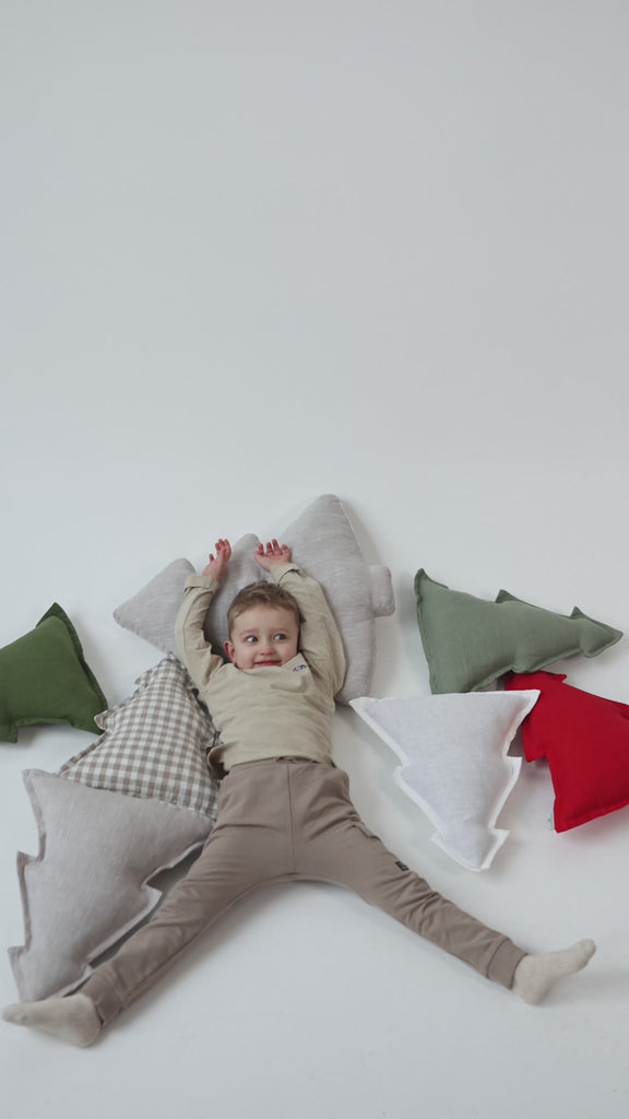 Hemp Linen Pillow Christmas Tree filled HEMP Fiber filler in Linen fabric Custom size / Color Carpet Activity Tummy time pillow