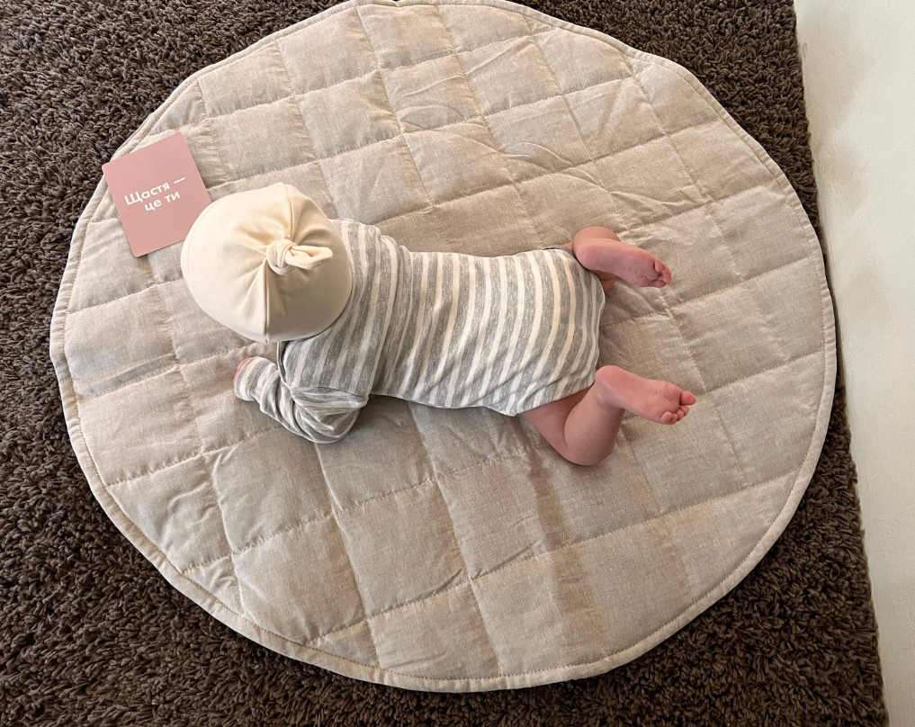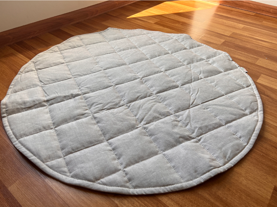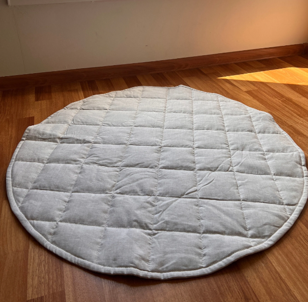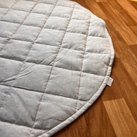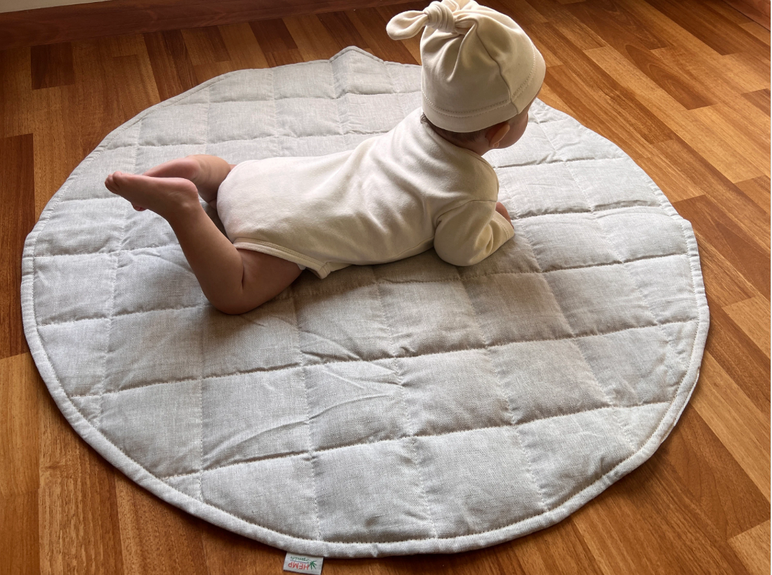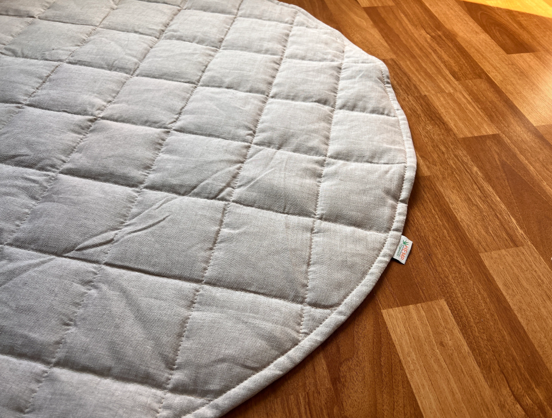 Hemp Linen Round Play mat filled HEMP Fiber in non-dyed linen fabric play quilted mat kids Activity Tummy time mat