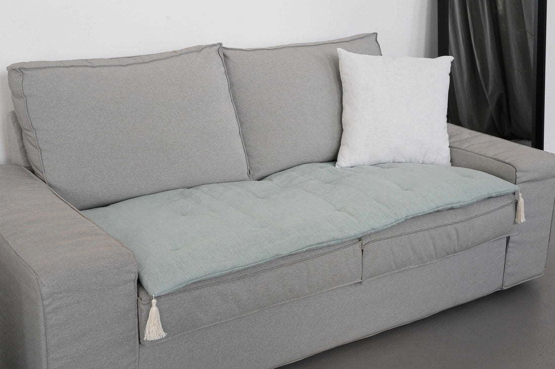 Sofa toppers are made from organic Hemp fiber filler and natural non-dyed Linen fabric.