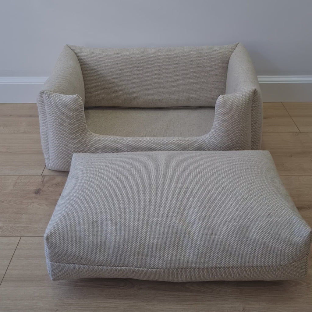 HEMP pet bed filled organic HEMP Fiber in dense natural beige linen fabric with thick cushion inside - mat - house for cats dogs organic