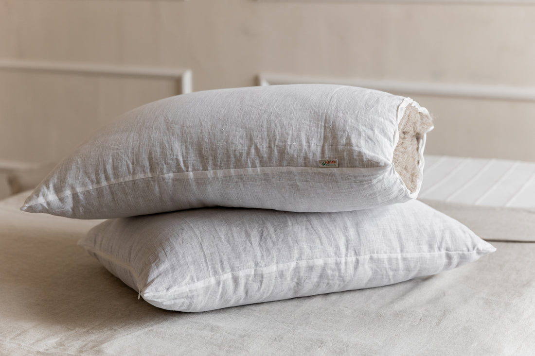 Hemp Pillow filled HEMP FIBER in white Linen fabric with zipper Regulation height/Hemp pillow/ Bed Pillow /Toddler pillow/ Eco friendly