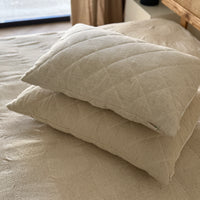 Quilted Cover with hemp fiber can put in the dryer on delicate mode at low temperatures.