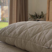The filler is made of environmentally friendly hemp fiber. The base is natural - hemp fiber, to help it retain its shape and remain elastic, a small addition of polyester fibers is allowed. Their role is purely technical - to gently bind the hemp fibers together and increase elasticity, without affecting the natural properties of the product, providing comfort.