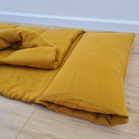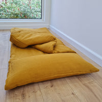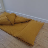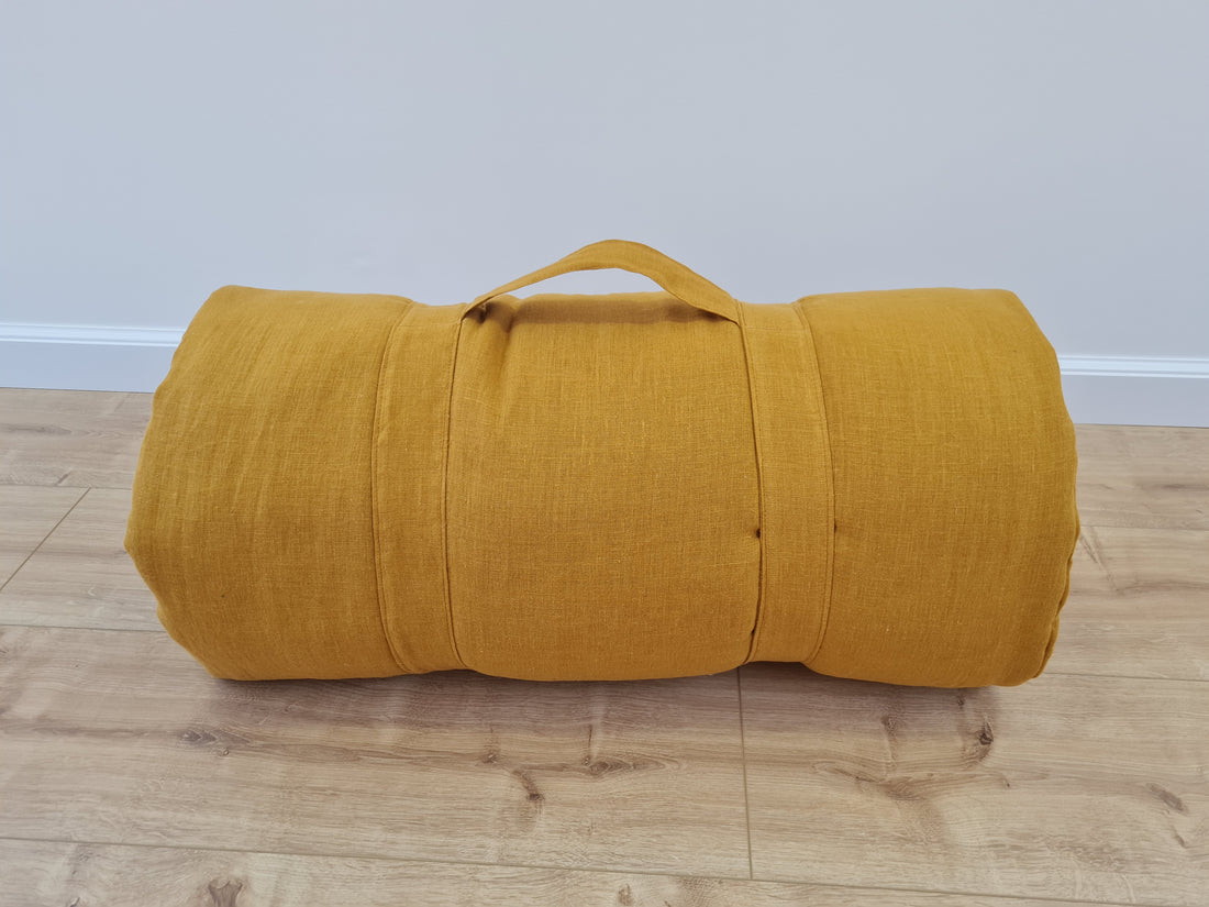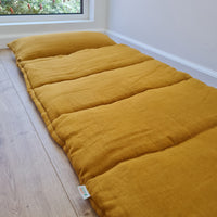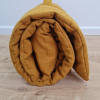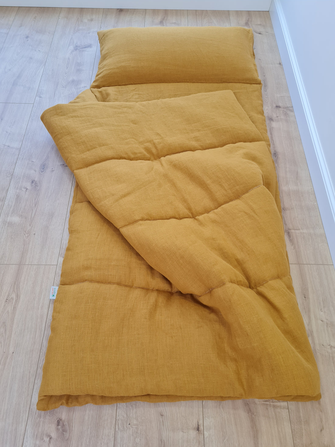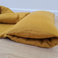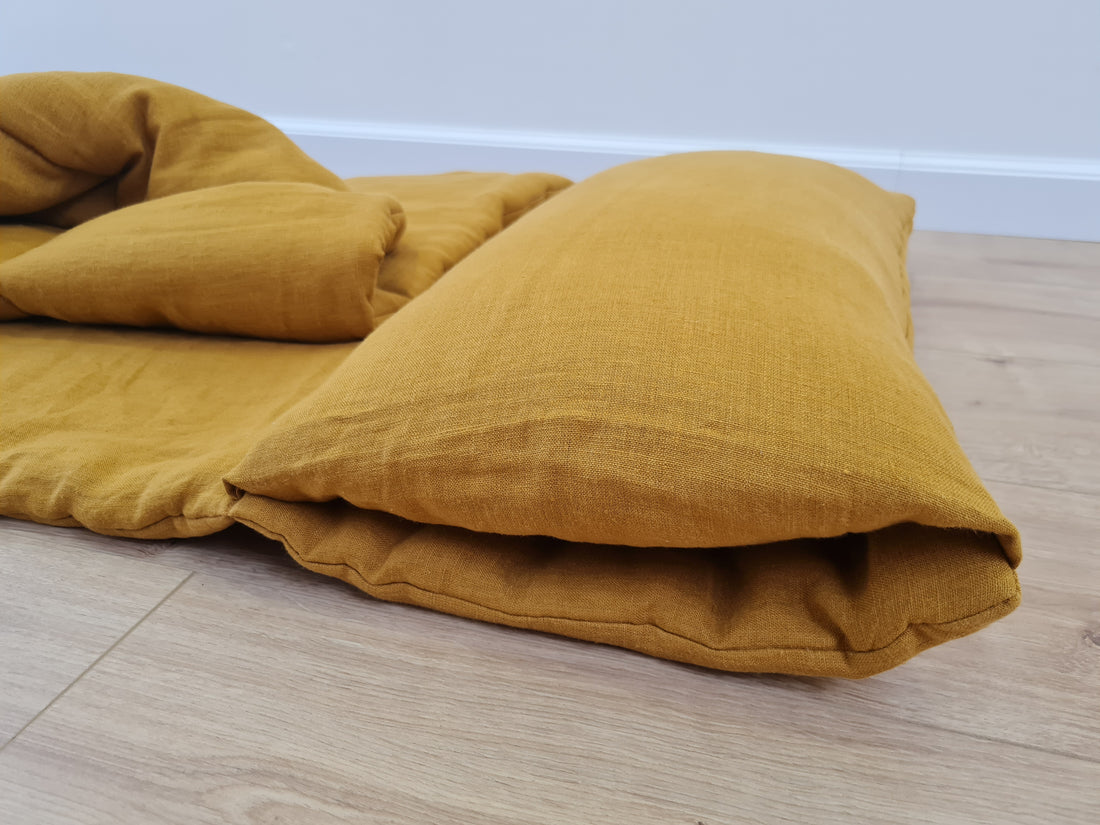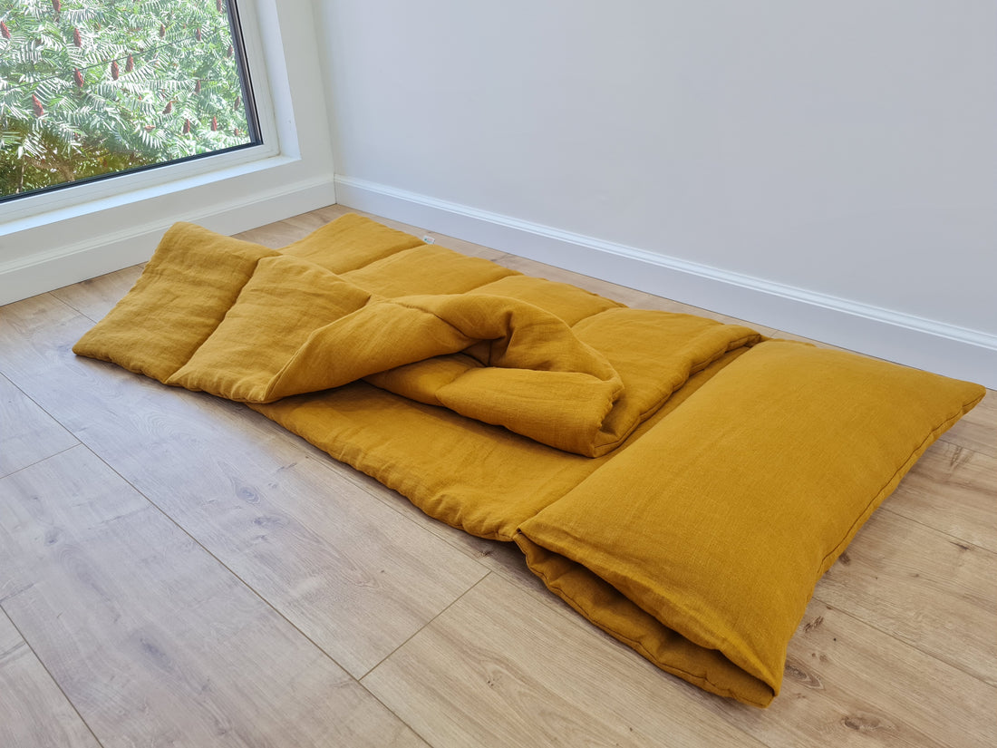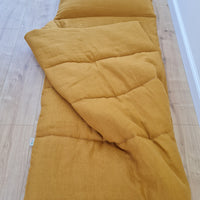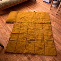 Kindergarten Hemp Linen Sleeping Bag with Pillow School Nap Mat Kids Organic Hemp Fiber Filling in mustard Linen Fabric hand made