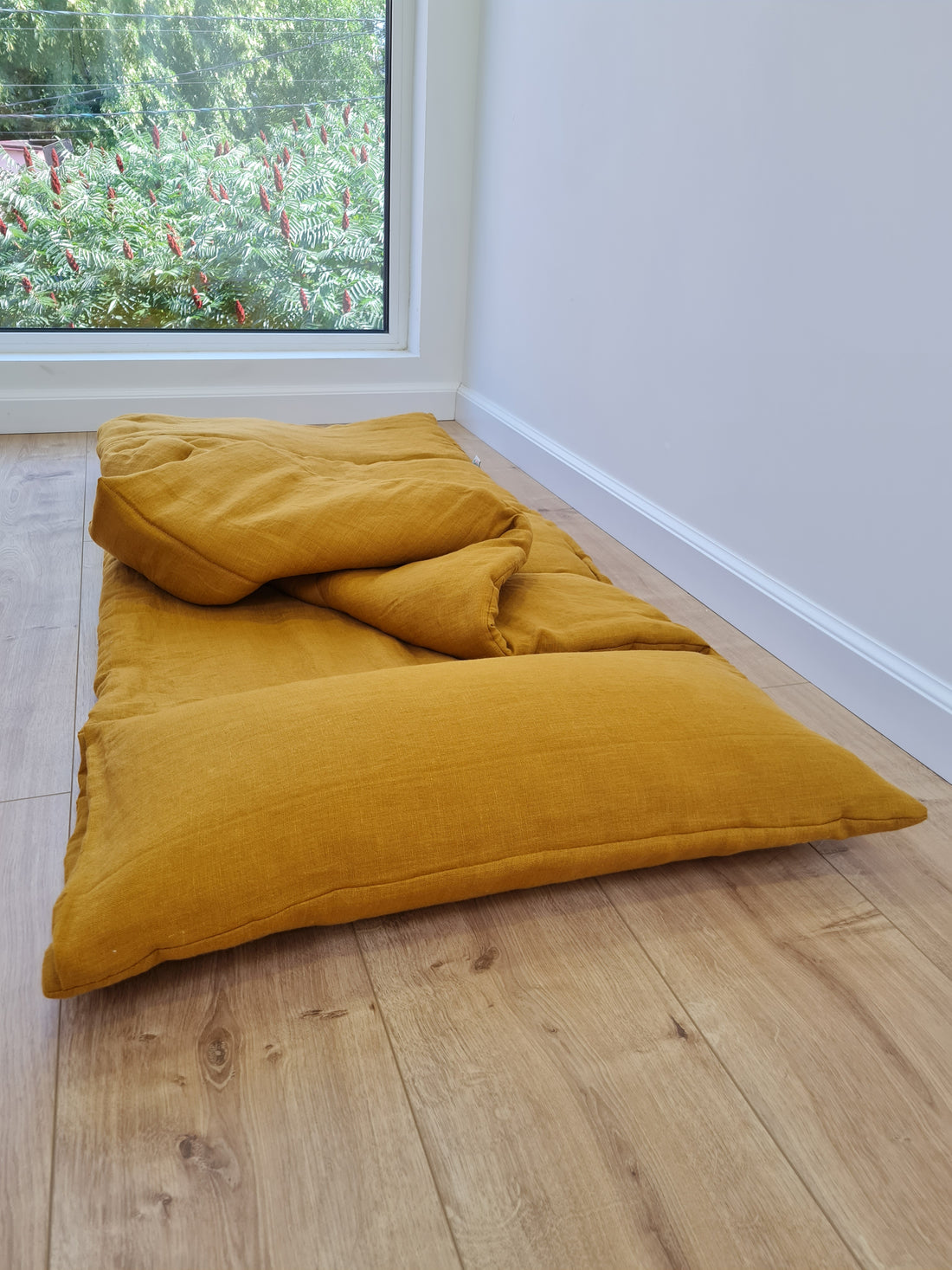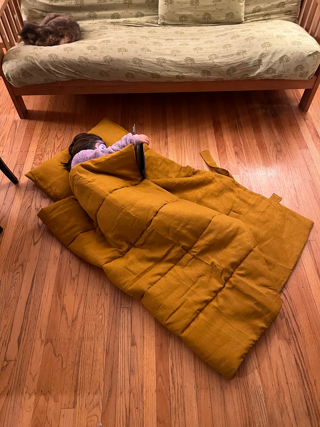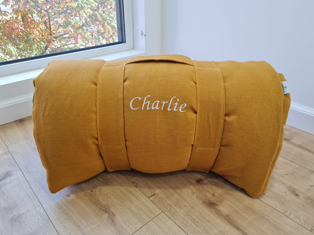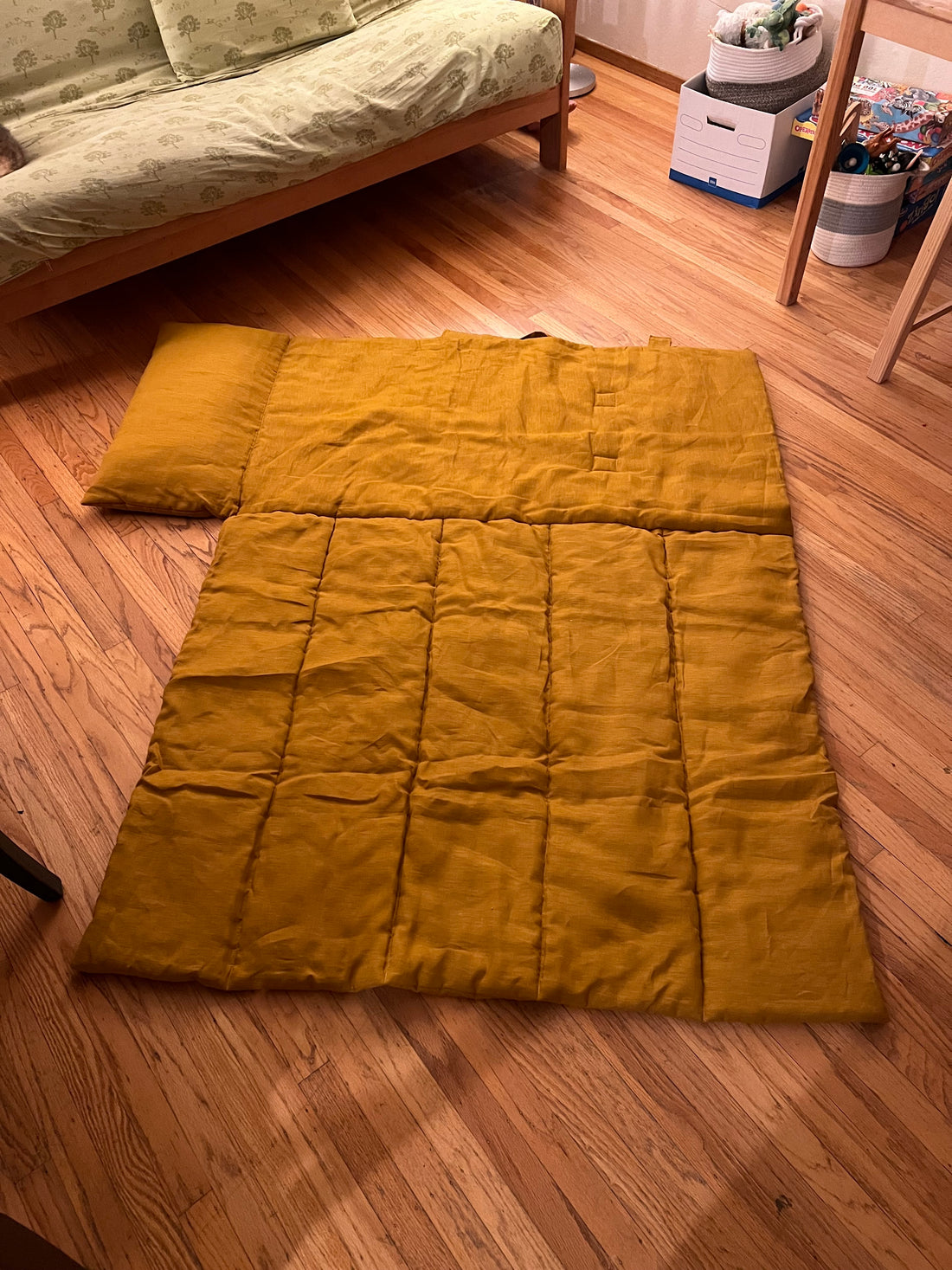 Kindergarten Hemp Linen Sleeping Bag with Pillow School Nap Mat Kids Organic Hemp Fiber Filling in mustard Linen Fabric hand made