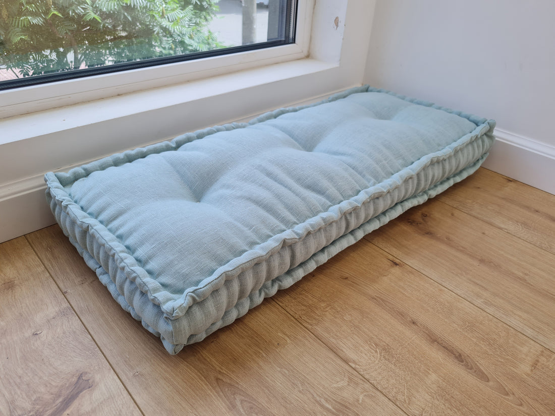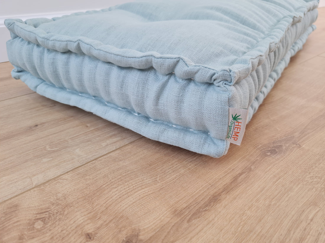 Light Hemp Floor cushion with organic hemp fiber filling in natural linen fabric / floor french pillow seat