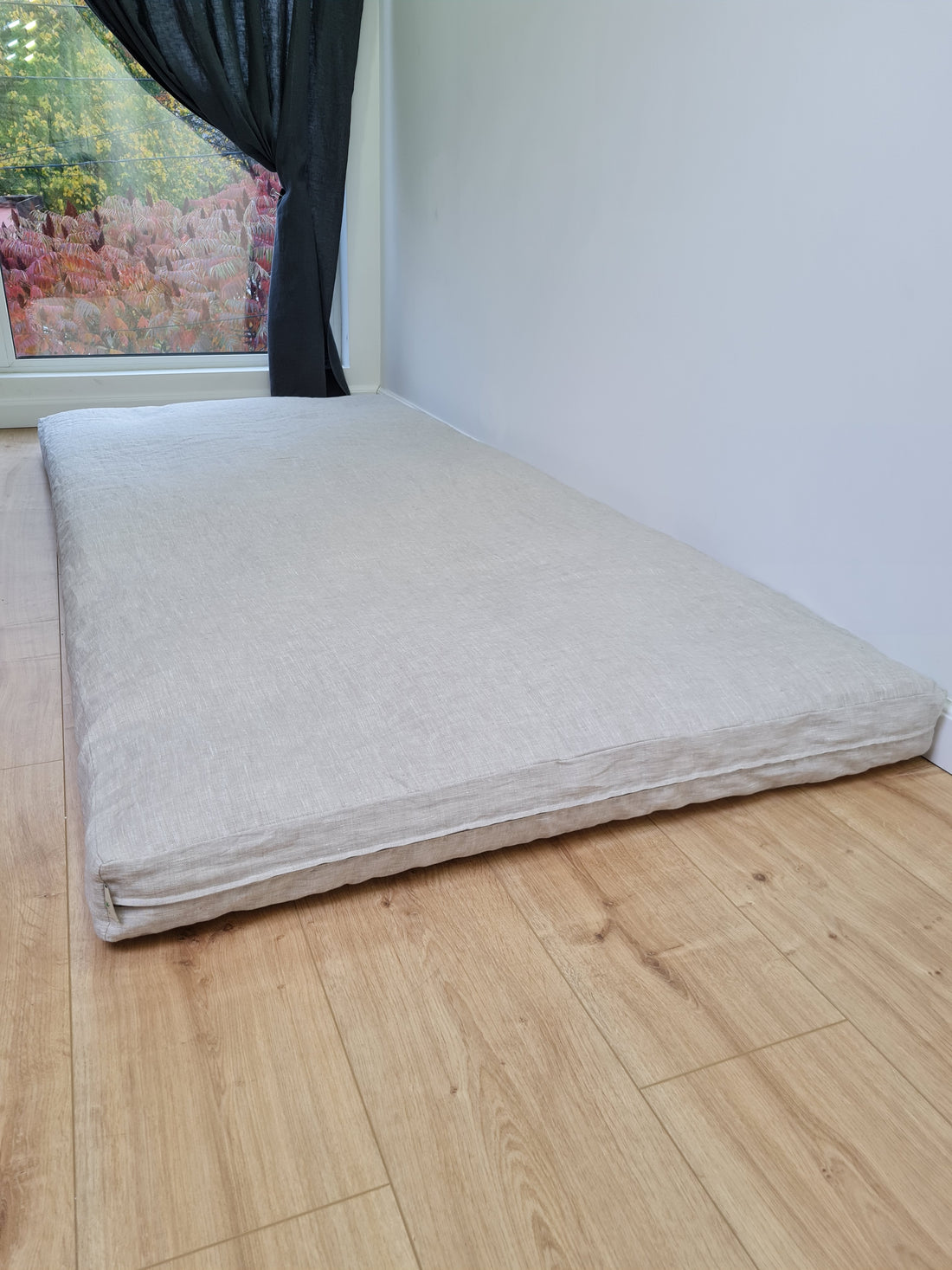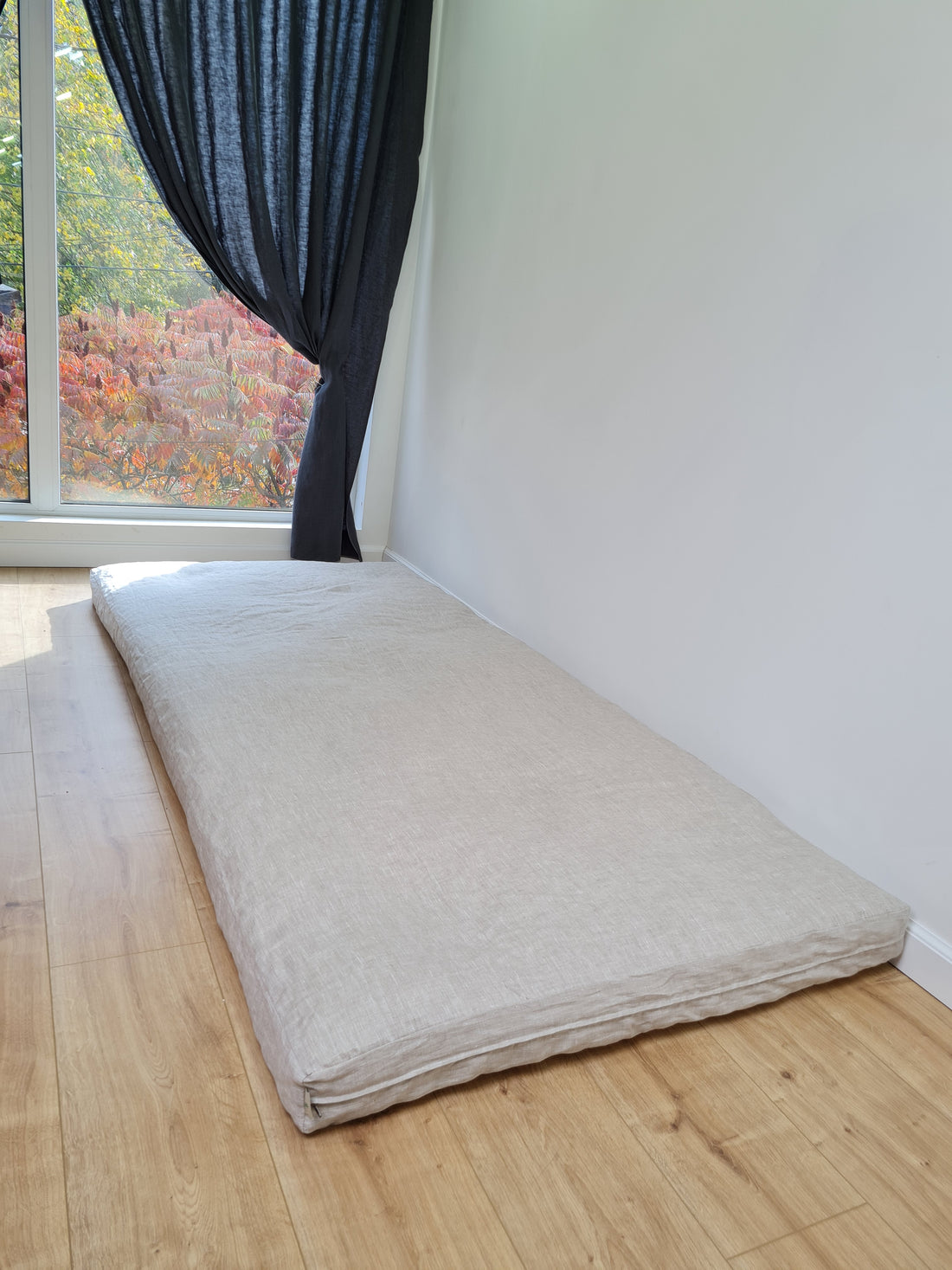 Linen Cover with zipper for shikibuton 3" thik in Grey Undyed Unbleached Natural Linen Fabric Queen Full, Twin, King Custom size