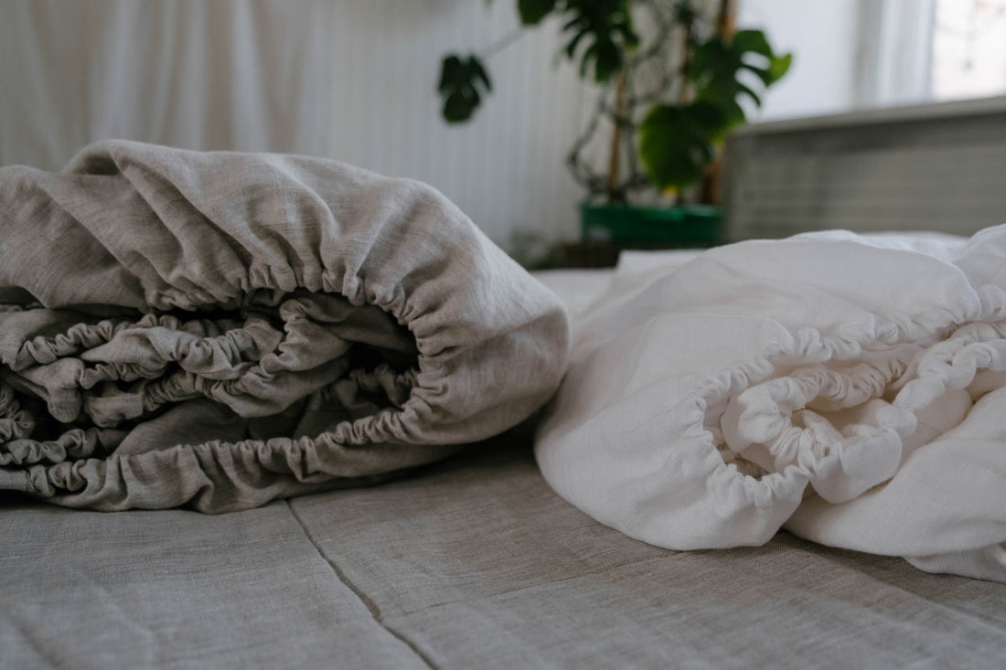 Linen Fitted Sheet Linen undyed unbleached Grey Washed Fabric Queen Full, Twin, King Custom size