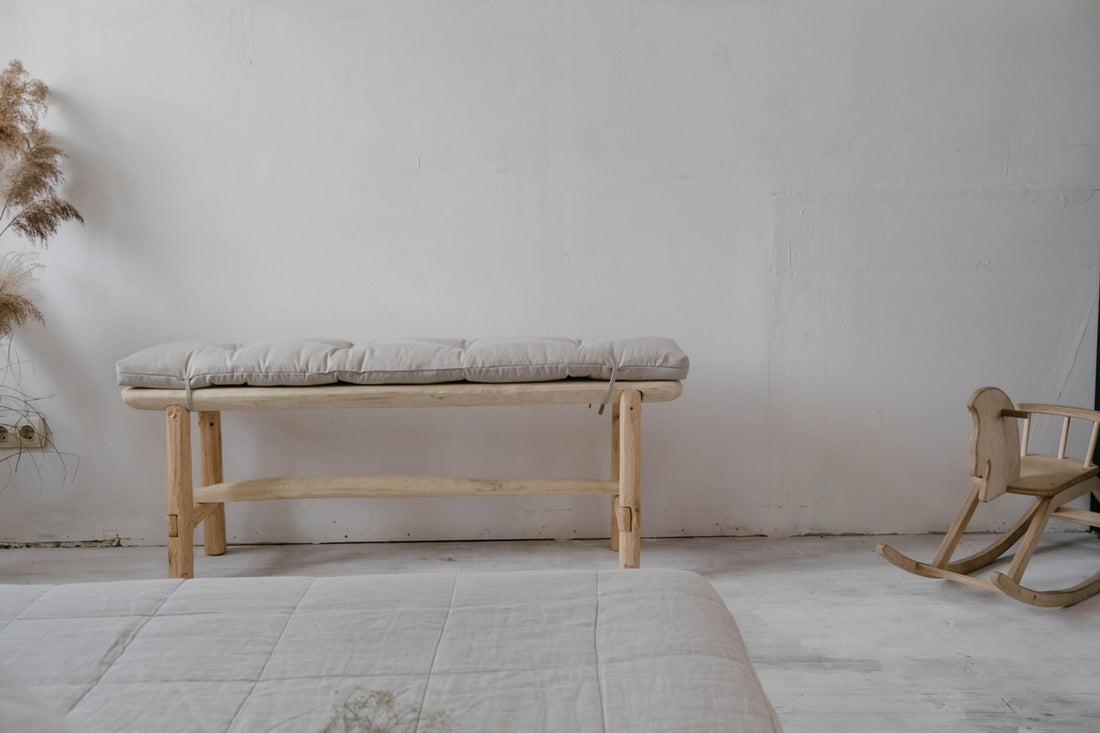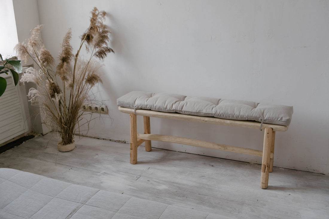 Natural Hemp Linen Cushion with Ties Custom Made filled organic Hemp Fiber in natural non dyed Linen Fabric Window Bench Mudroom cushions