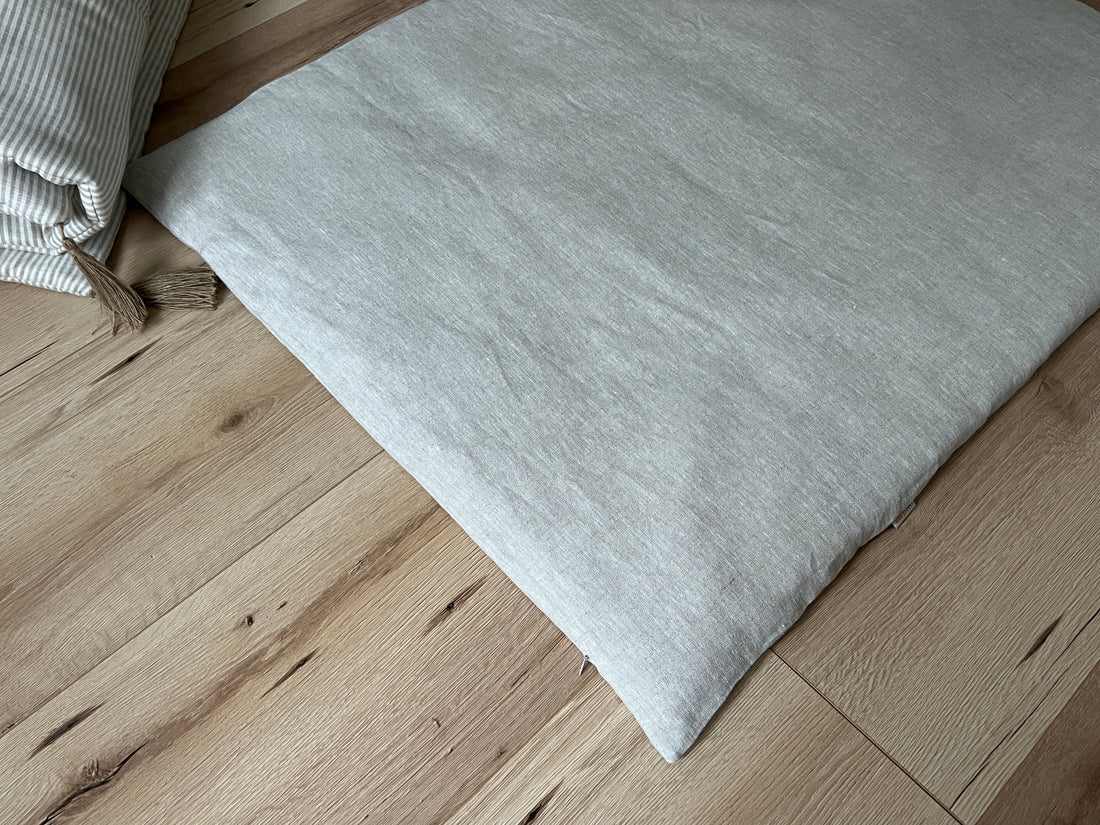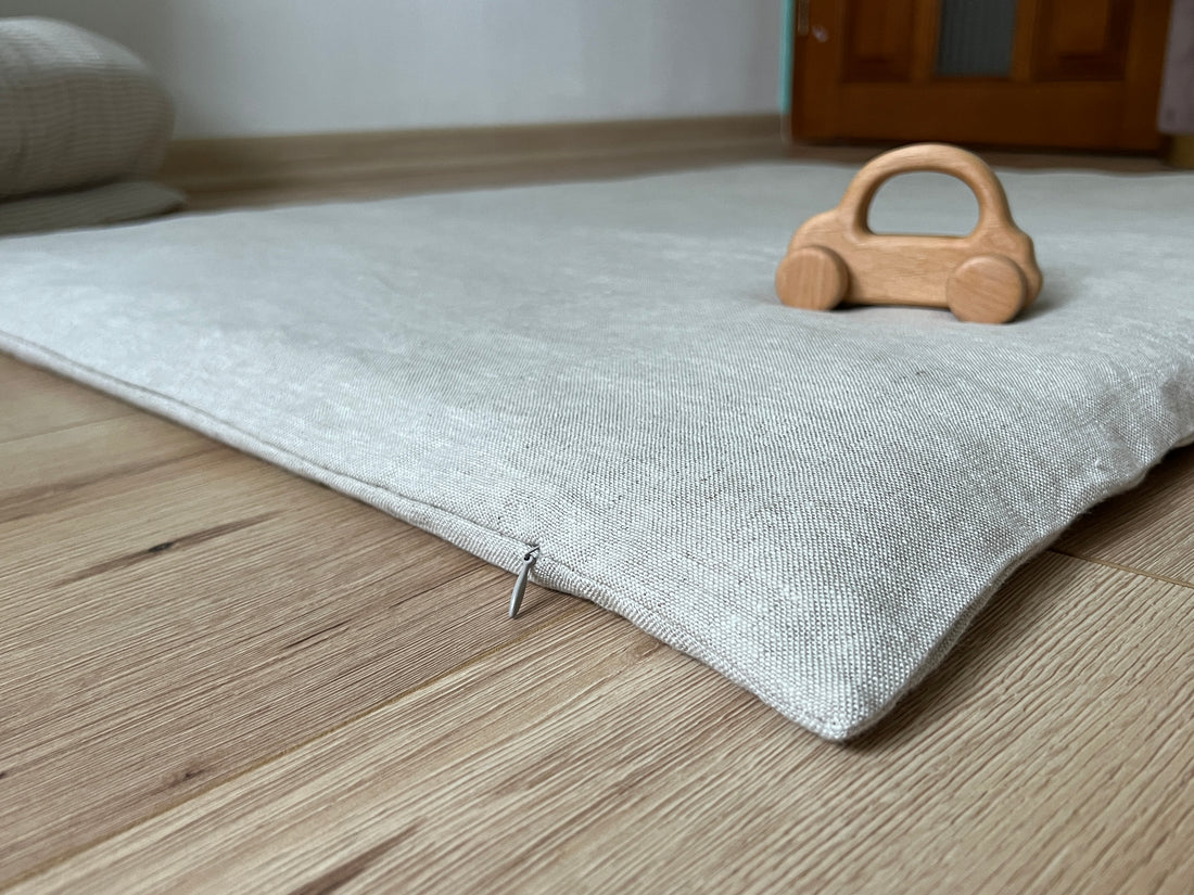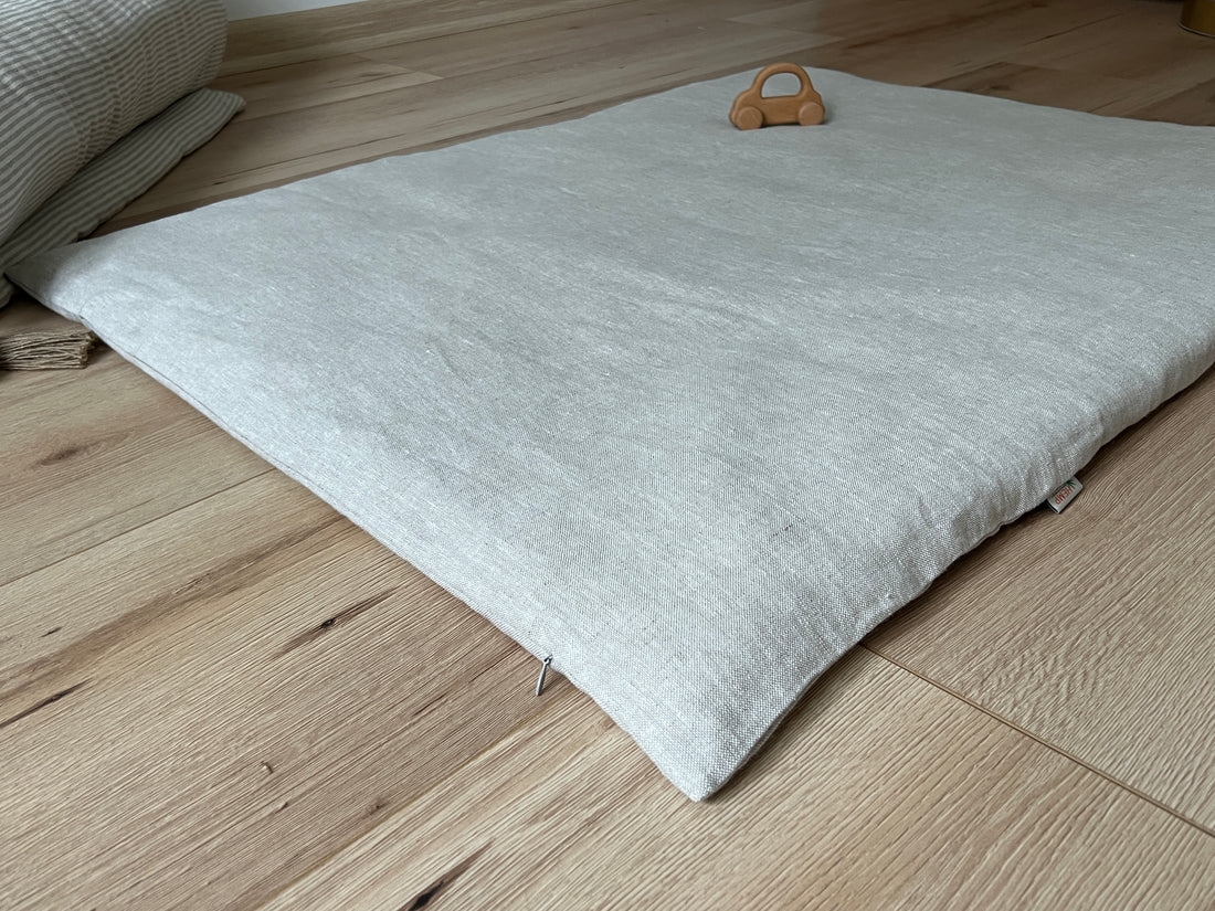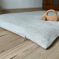 Natural Hemp Linen Play Mat with Linen Removable cover filled organic HEMP Fiber - cotton mat in non-dyed linen Nursery Baby Blanky padded