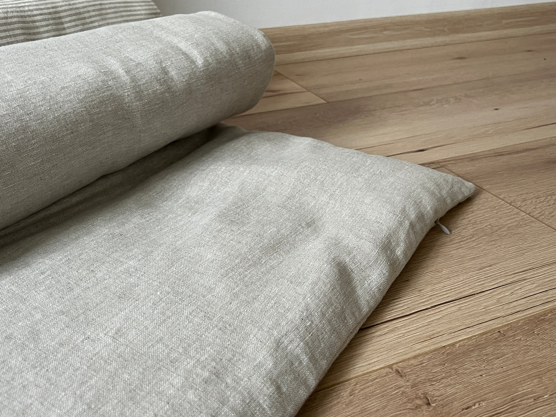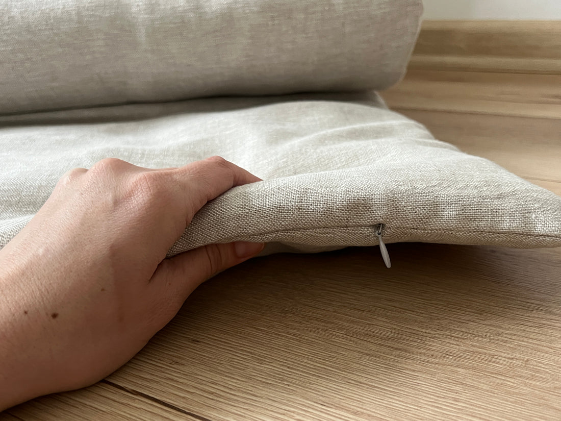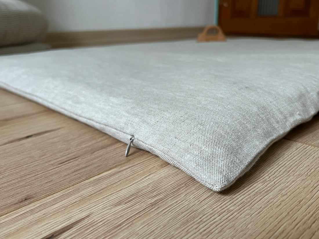 Care: Hemp mat with a washed linen cover with zipper - so you can wash it often in the washing machine. In a delicate mode, up to 30 degrees of Celsius.