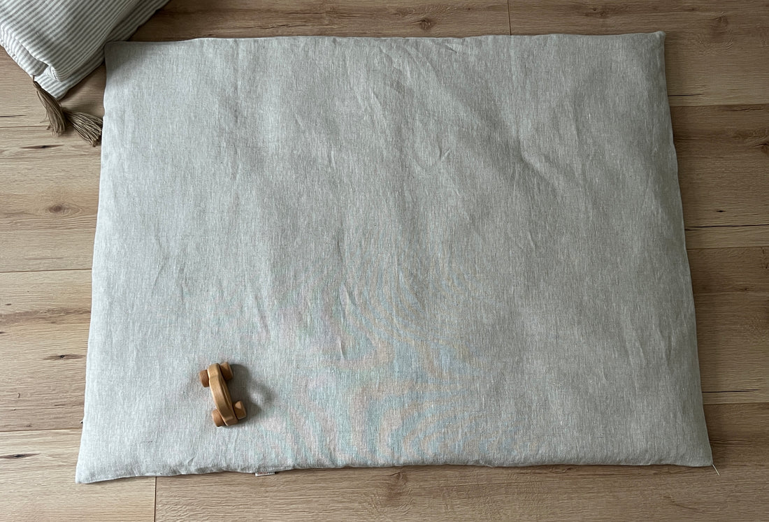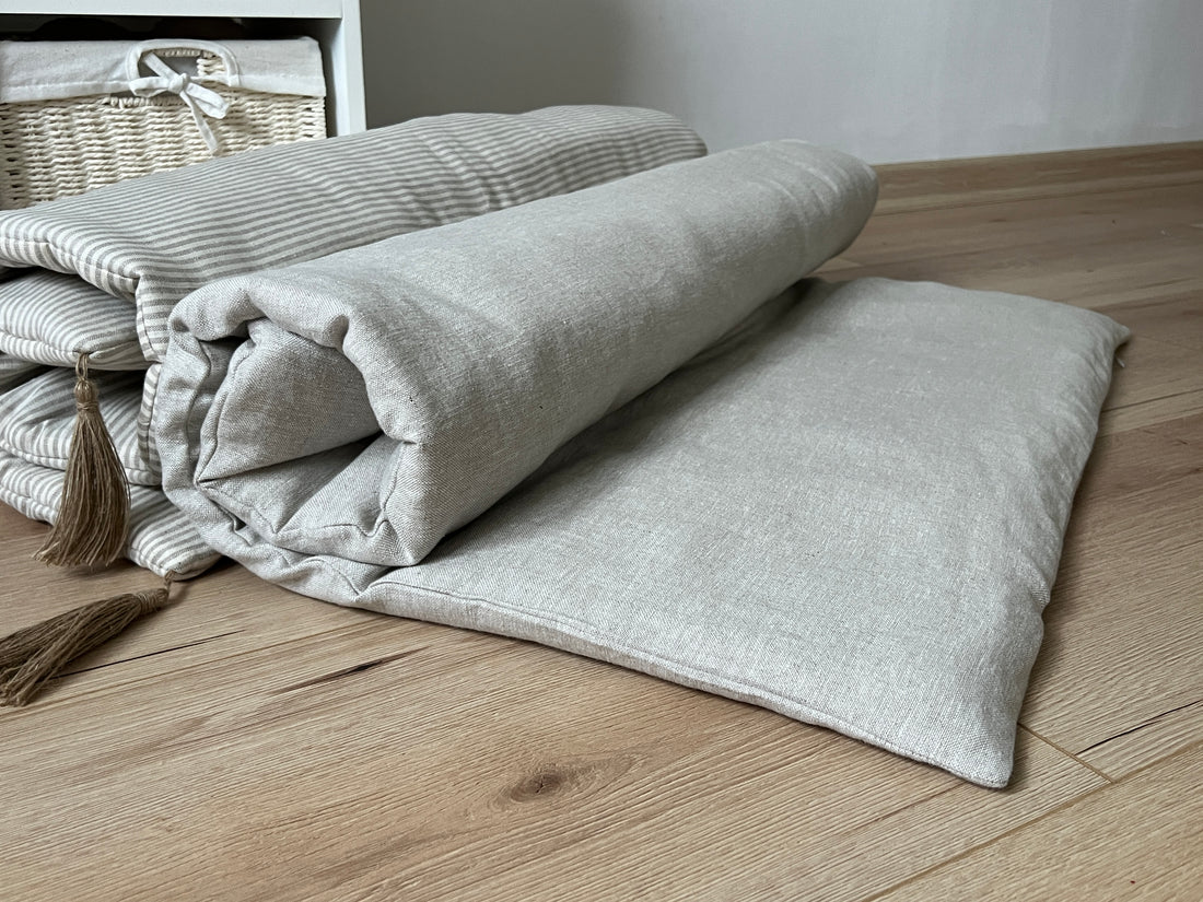 Natural Hemp Linen Play Mat with Linen cover filled organic HEMP Fiber - cotton mat in non-dyed linen cover Nursery Baby Blanky padded