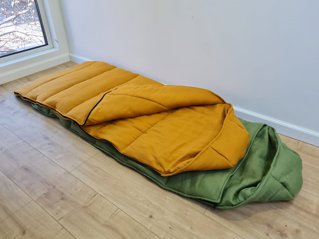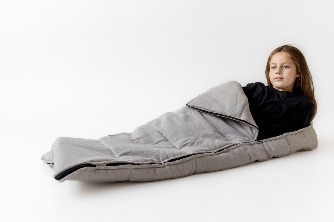 Natural Kids HEMP Linen Sleeping Bag with Hood School Nap mat for Kids, camping van sleeping bag organic hemp fiber filling
