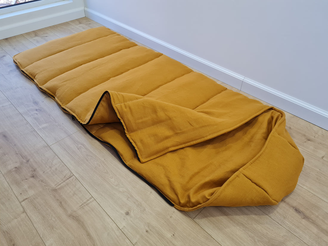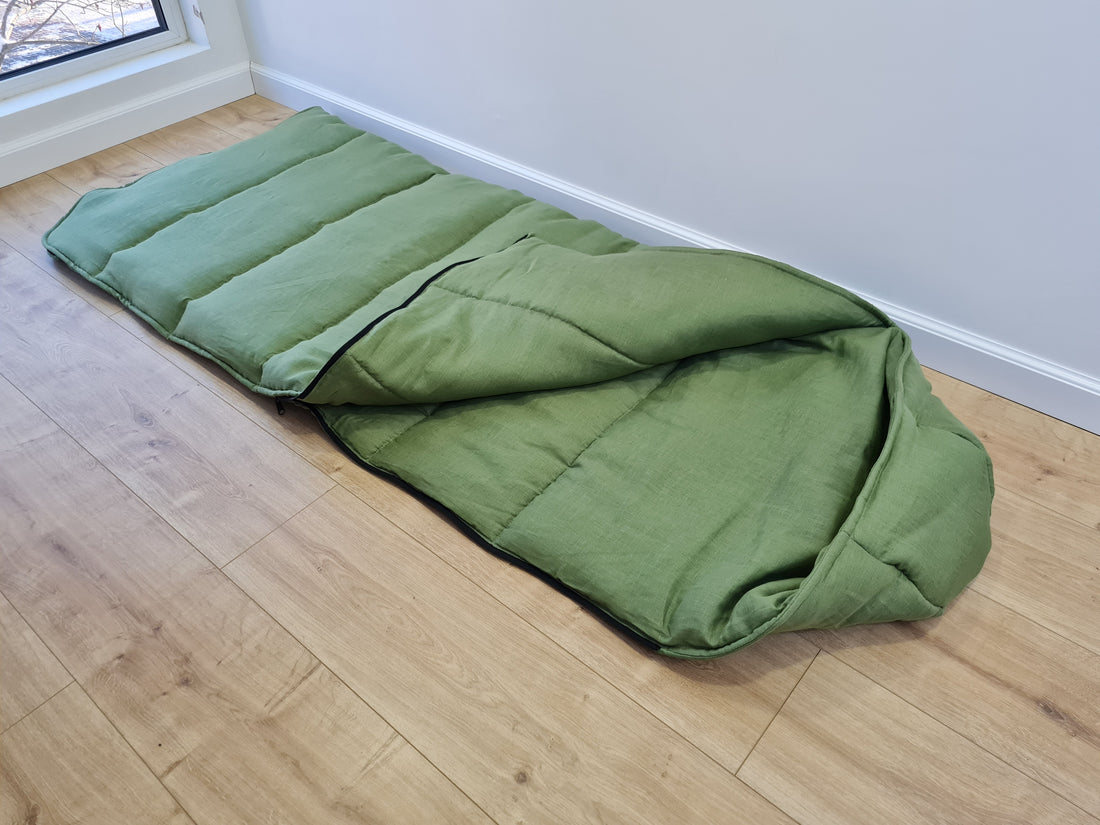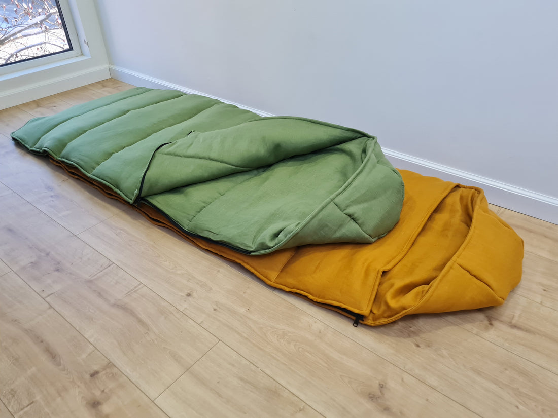 Natural HEMP Linen Sleeping Bag with Hood for Kids camping for kids School Nap mat for Kids, Toddler Nap Mat organic hemp fiber filling in linen fabric