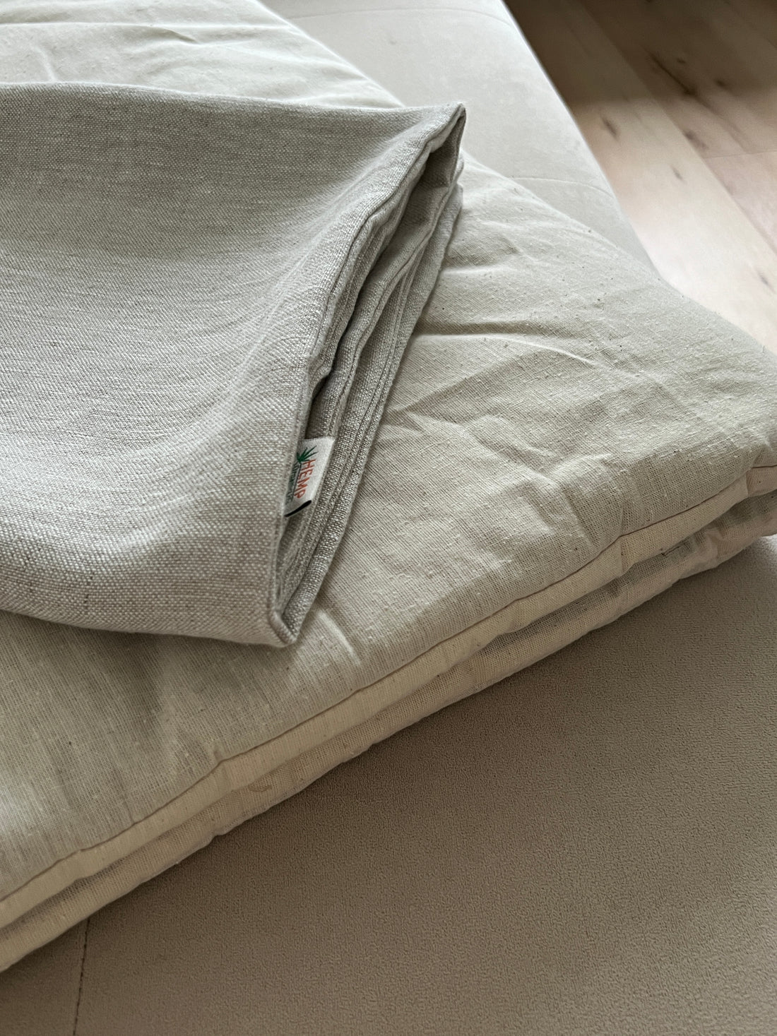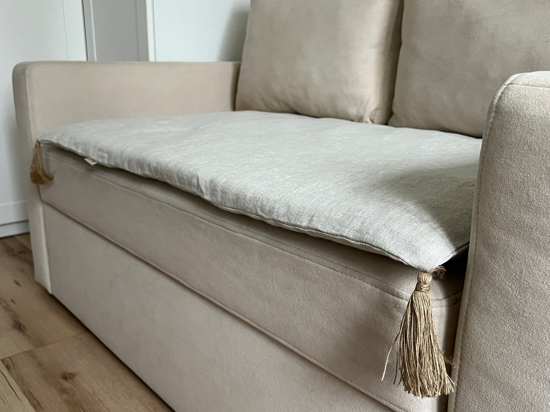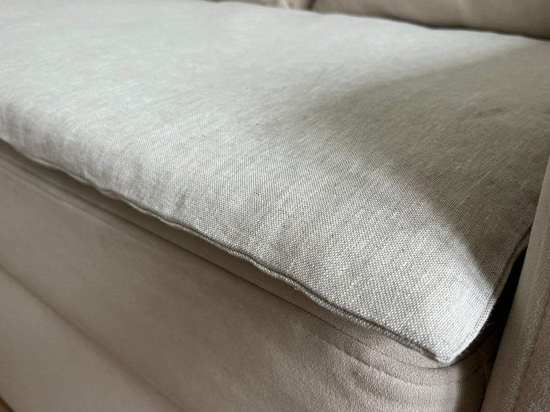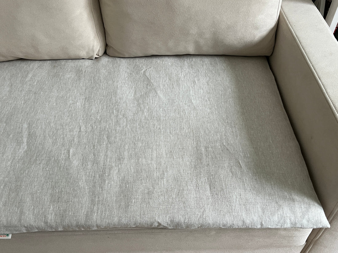 Sofa toppers are made from organic Hemp fiber filler and natural Linen fabric.