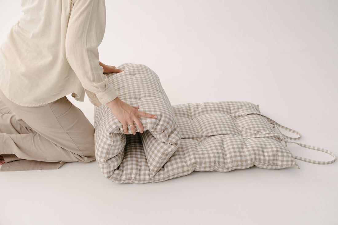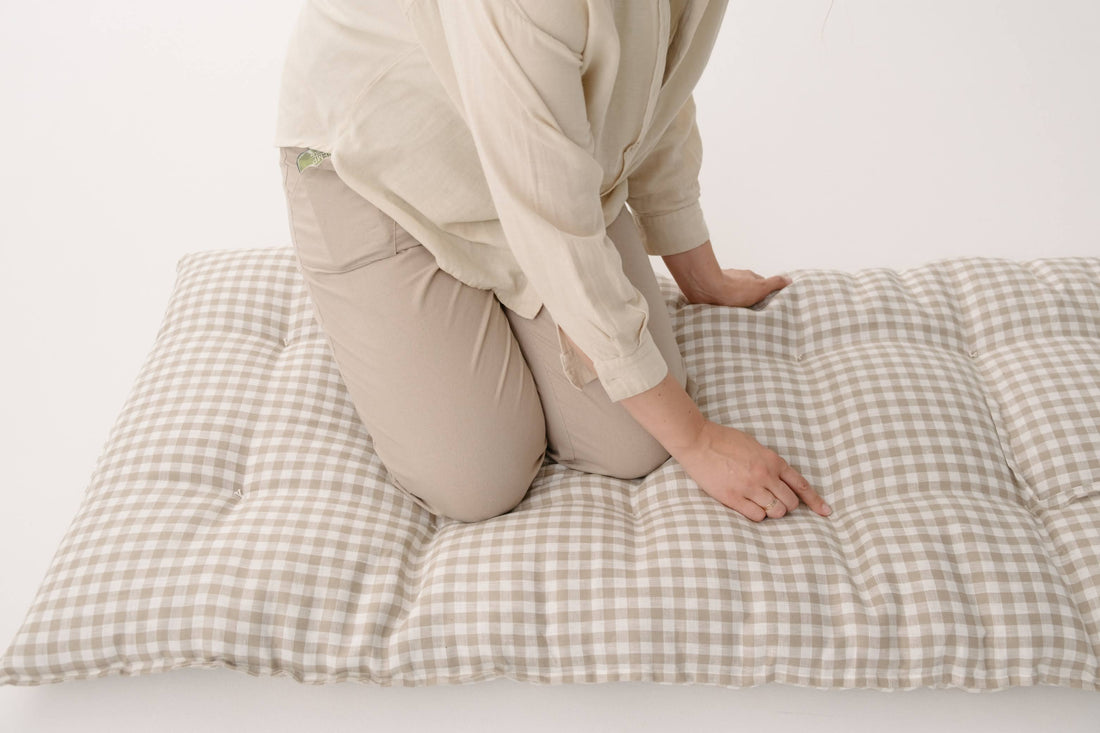 Organic Play mat Crawling mat filled HEMP Fiber in linen fabric playpen Blanky padded