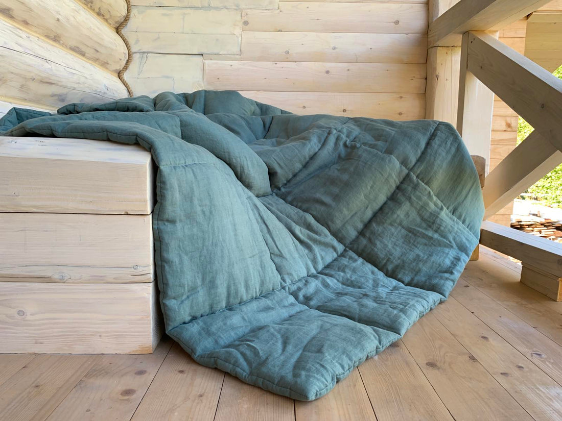 Thick Natural HEMP Linen Comforter "Wood breeze" Blanket Duvet Insert Hemp filler in natural linen fabric Full Twin Queen King Custom size