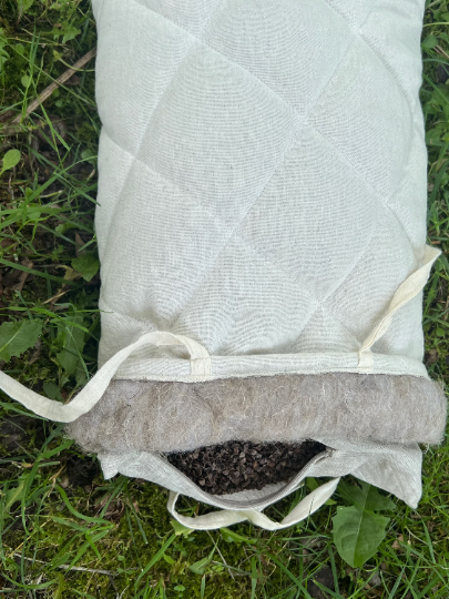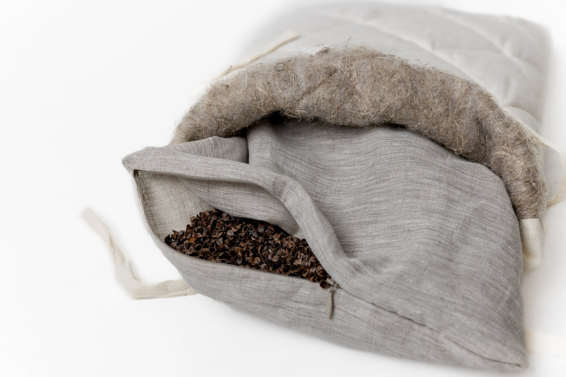 Pillow Filler: organic high quality buckwheat hulls in linen non-dyed bag with zipper