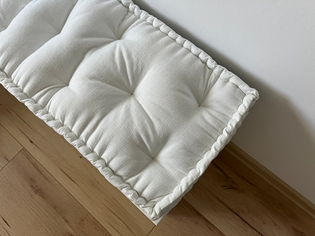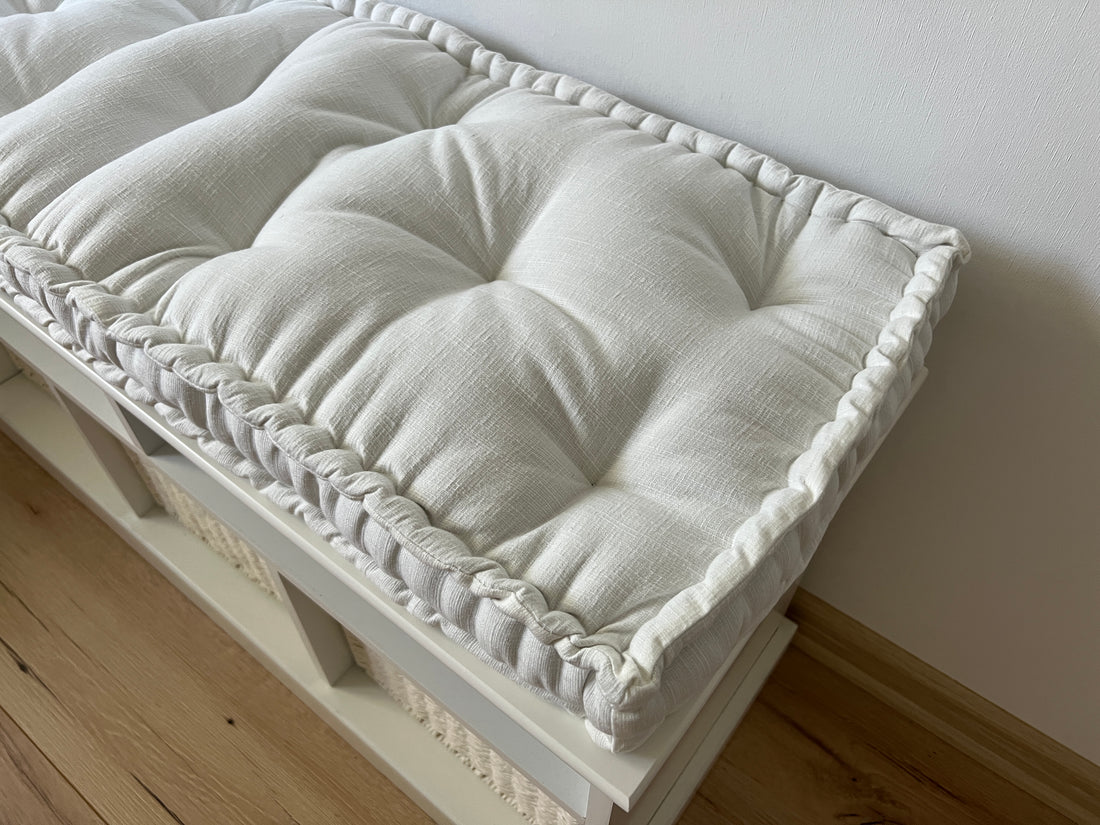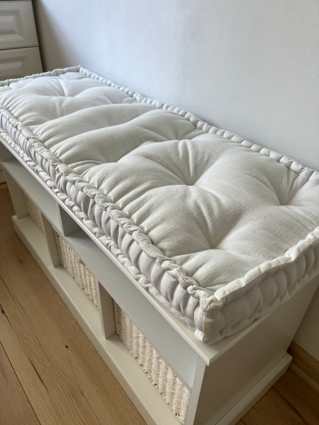 White Hemp Linen Window Mudroom Floor Bench Cushion filled organic Hemp Fiber filling in Linen Fabric Custom Made